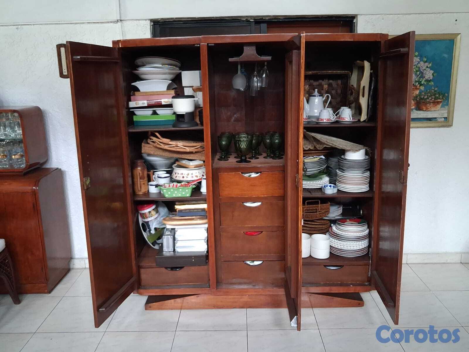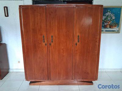 Armario amplio en caoba, con tres puertas verticales y herrajes metálicos clásicos. Su acabado pulido y su estructura sólida lo convierten en una pieza elegante y duradera, ideal para hogares con estilo tradicional o espacios que buscan un toque de lujo. En excelente estado de conservación.