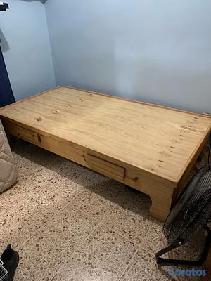Vendo base de cama individual en madera natural. No está pintada. Está en buen estado y firme.