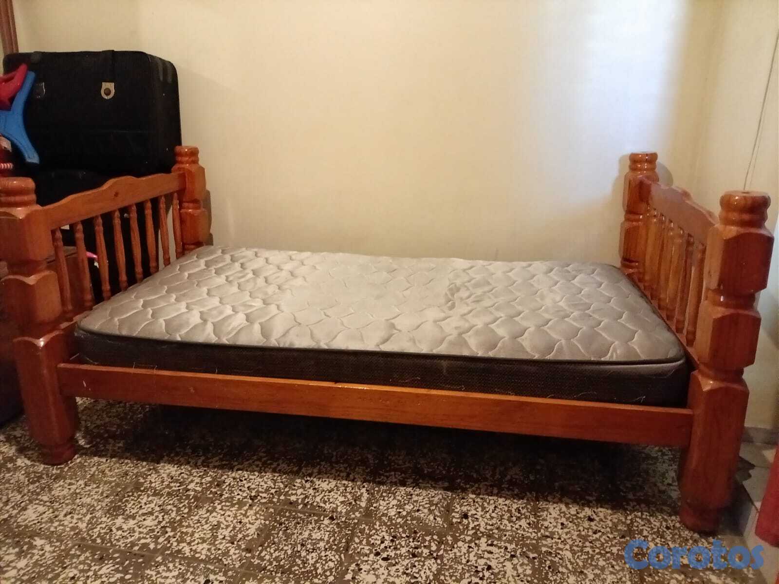 Se vende cama Twin en pino con colchón en excelentes condiciones...