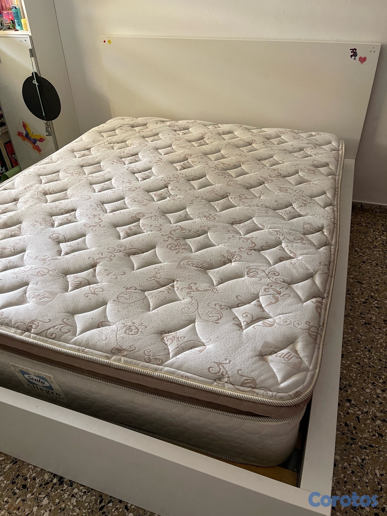 Cama tamaño Queen y colchón de calidad.
