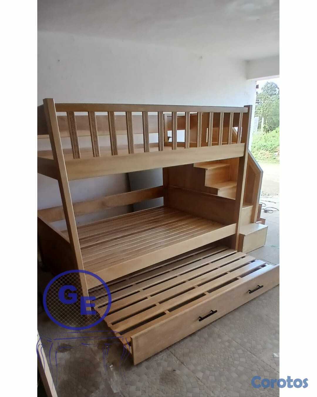 ideal para Adultos o niños , hecho en madera de roble, color natural, NO incluye los colchones