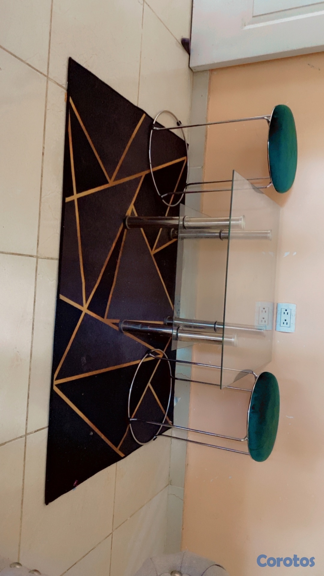 Mesa dos niveles de cristal otoman y alfombra