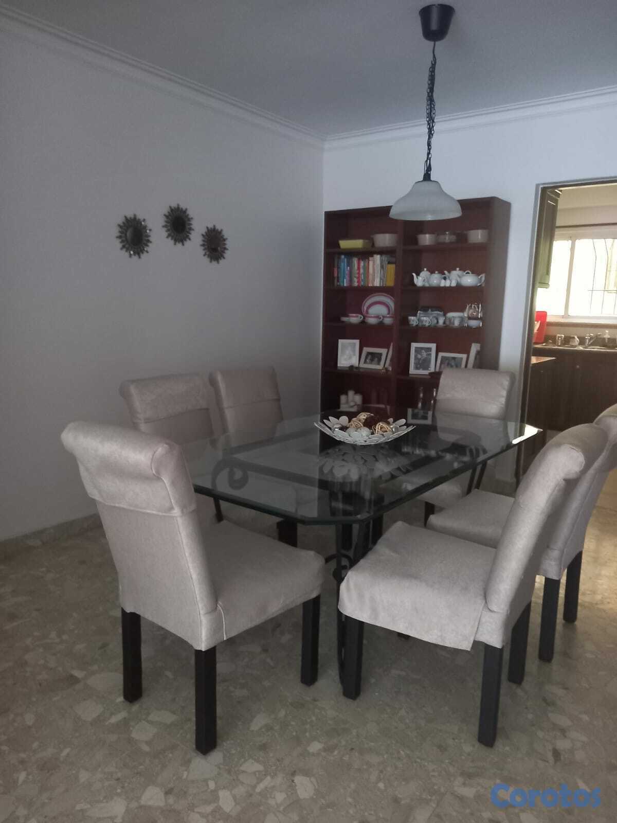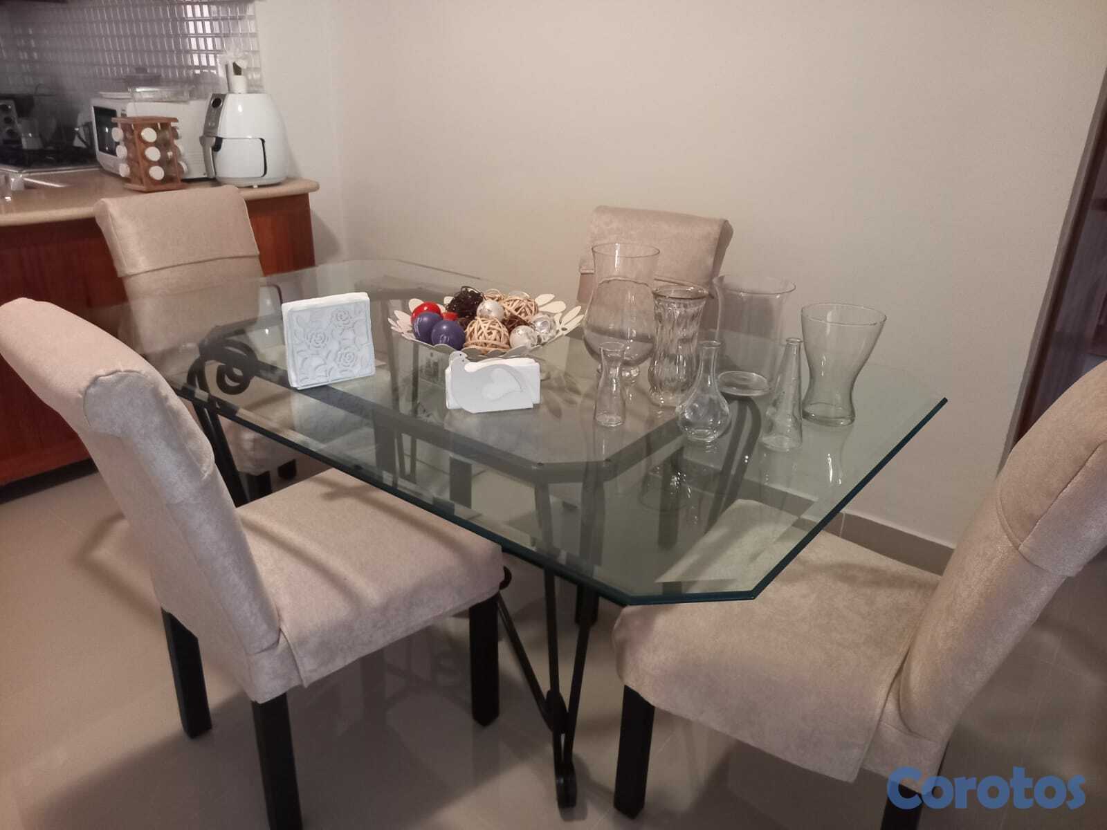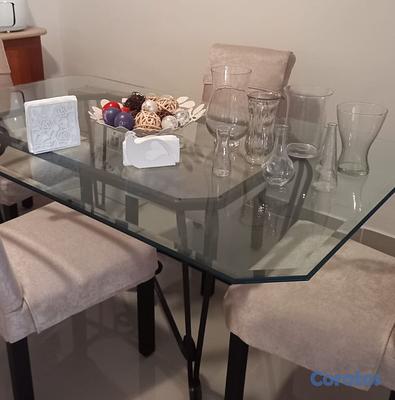 Comedor de 6 sillas. Mesa en cristal bicelado. Sillas acolchadas de tela de alta calidad, con poco uso. Seis sillas por 10,000 y la mesa en 8000. Se venden por separado.