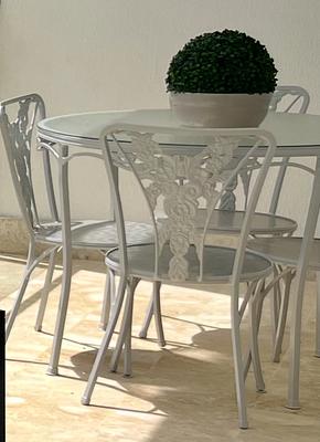comedor redondo y sus 4 sillas de hierro