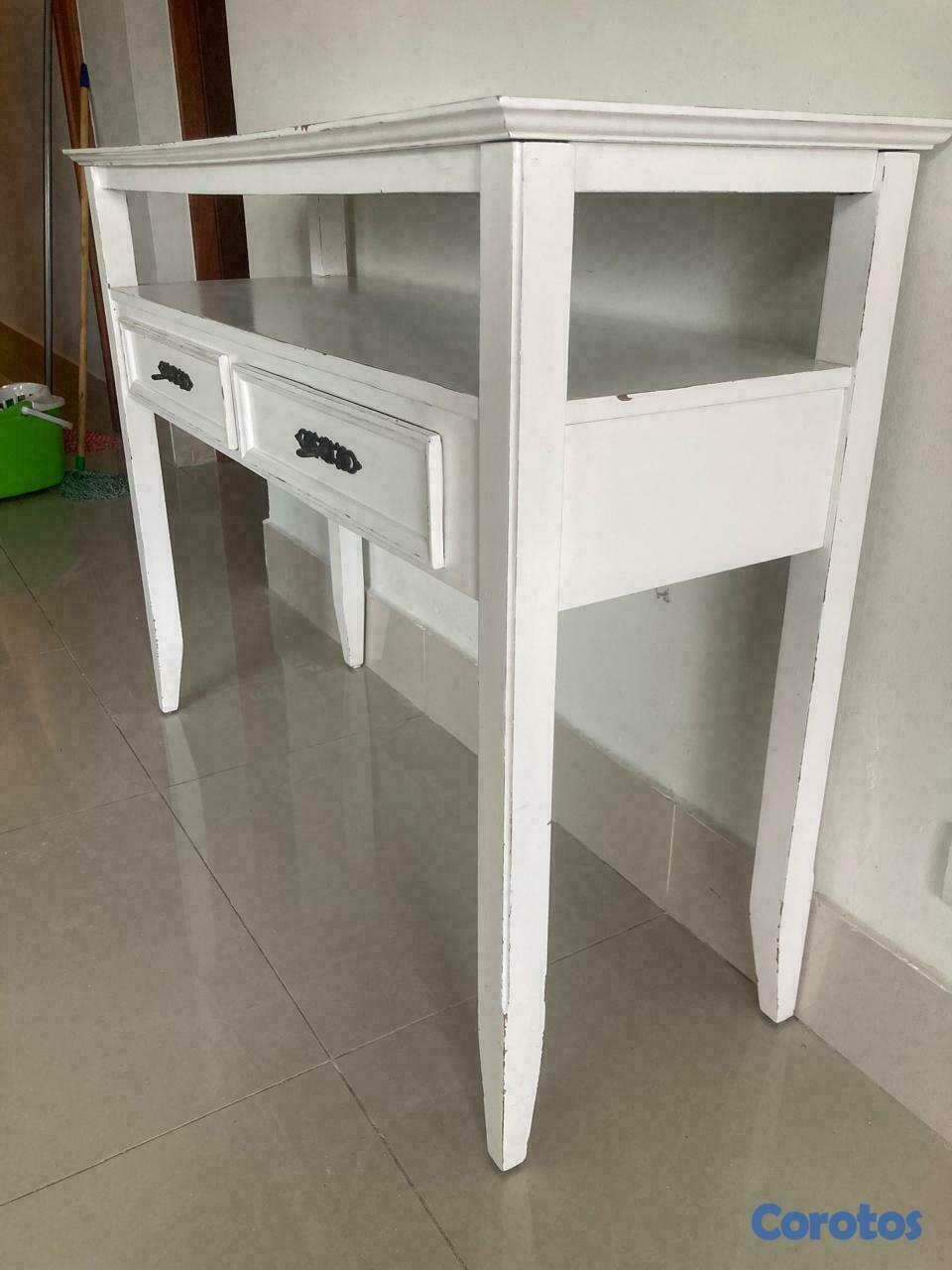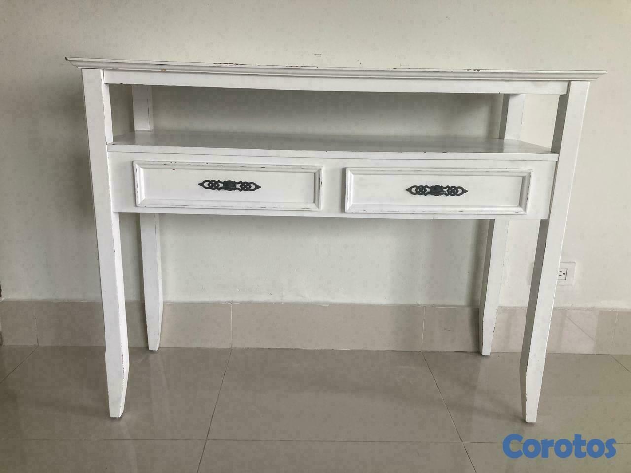 Mueble de Recibidor en madera pintado con tecnica envejecido color balnco.
