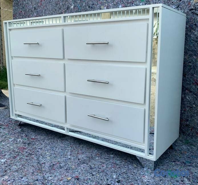 Gavetero en madera blanco con espejitos en los bor