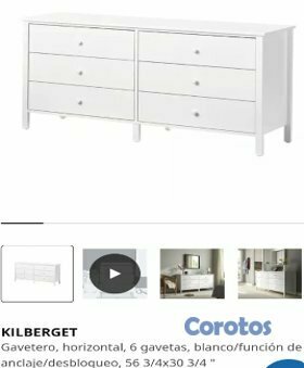Vendo elegante gavetero IKEA Kilberget blanco con 6 amplias gavetas, en excelente estado, muy bien cuidado y listo para usar.