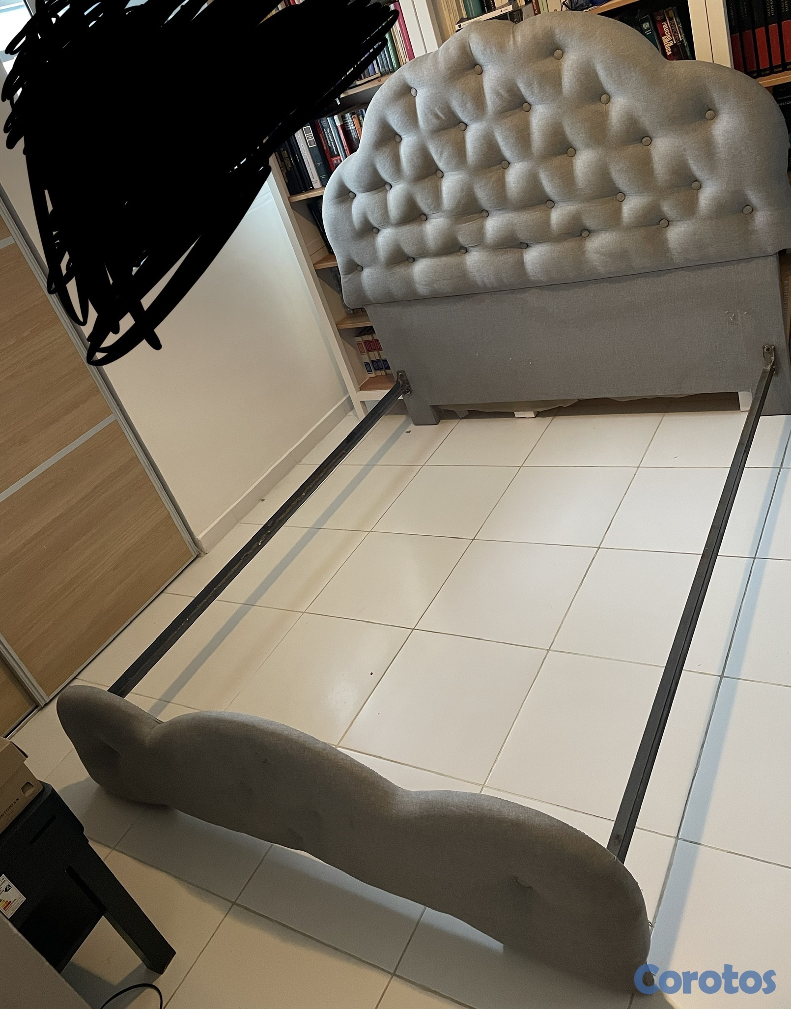 Oferta! Hermosa base de cama en caoba-tapizada pimponeada en color gris