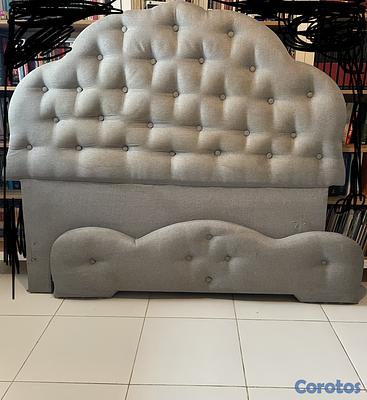 Cuadro cama madera caoba, con revestimiento pimponeado en color gris. Excelentes condiciones. Cama Queen.