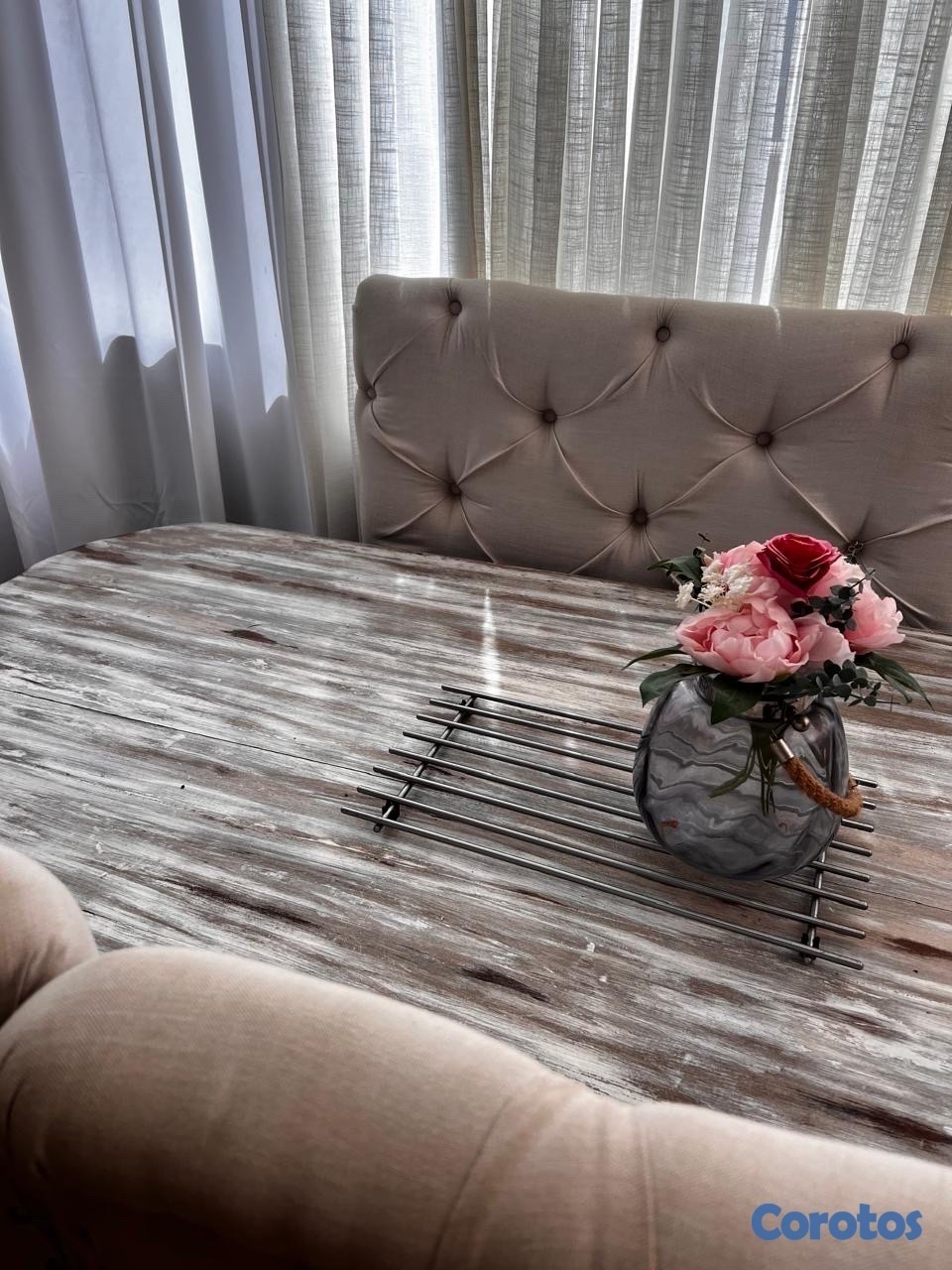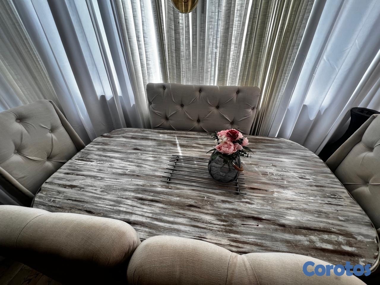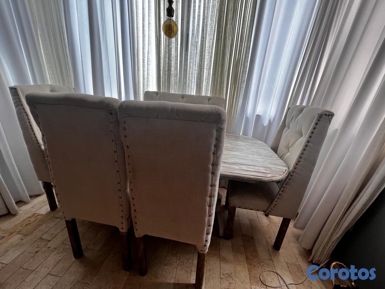 juego de comedor es en caoba,costo lo que vale pero lo restaure para que combinara con el lugar donde vivía ahora me mude y necesito otro rústico, tiene 6 sillas solo que uni 2