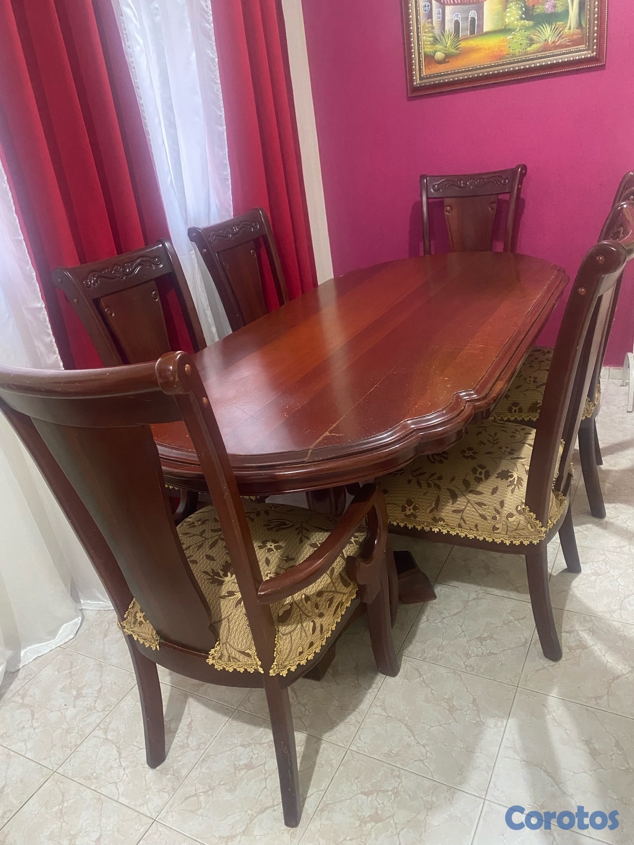 Juego de comedor en caoba con 6 sillas