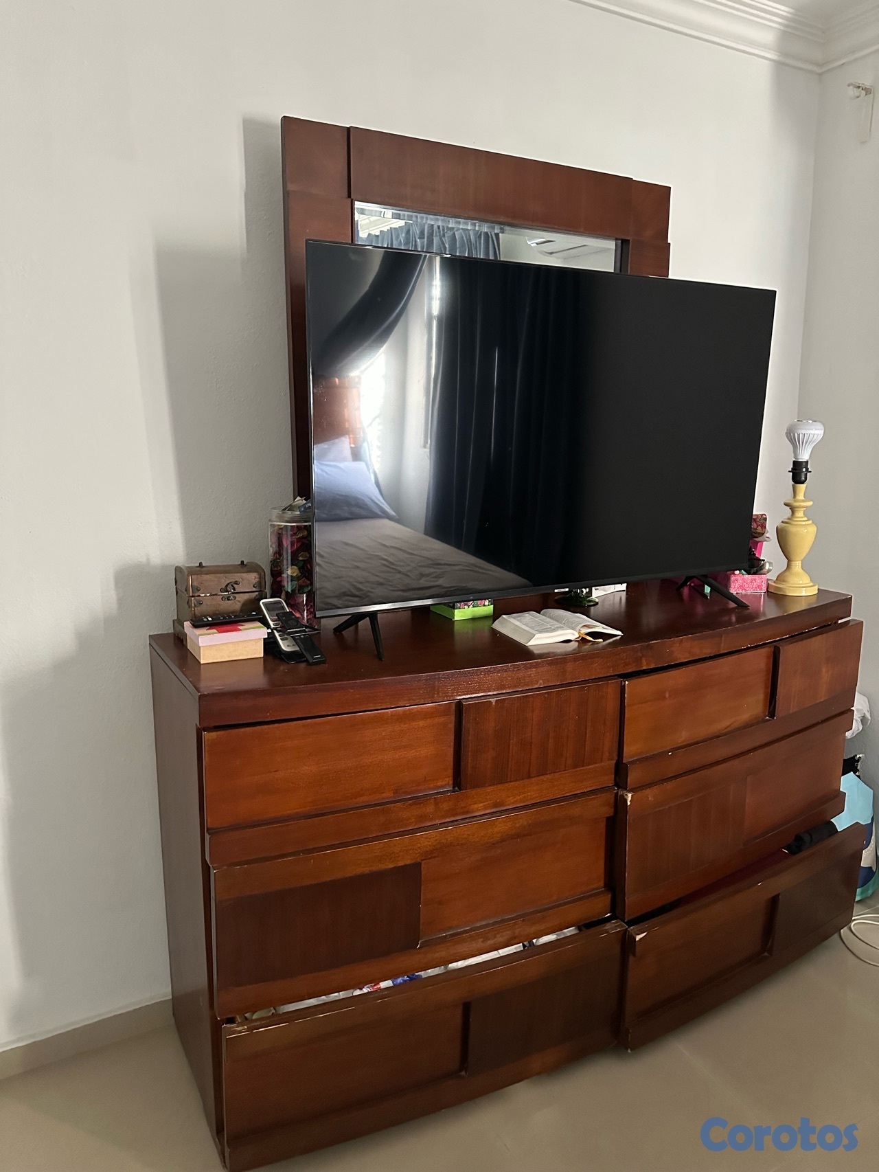 juego completo de habitación queen ! incluye 1 gavetero de 6 gavetas y otro de dos , base de la cama y el juego de colchón . 60 mil pesos