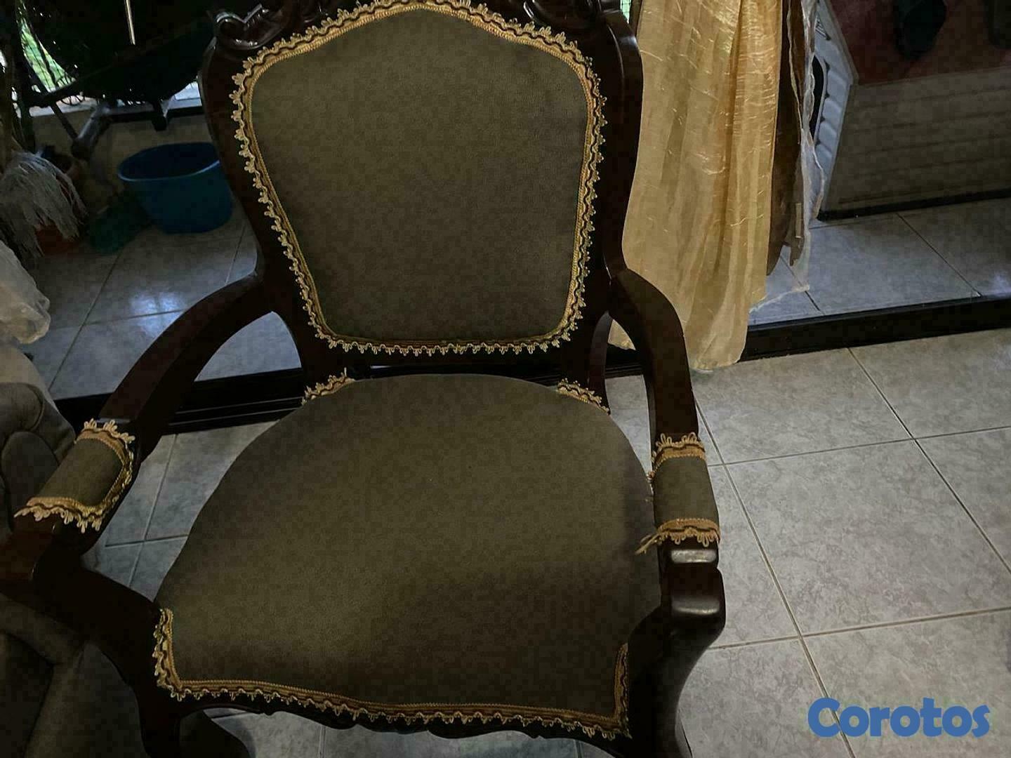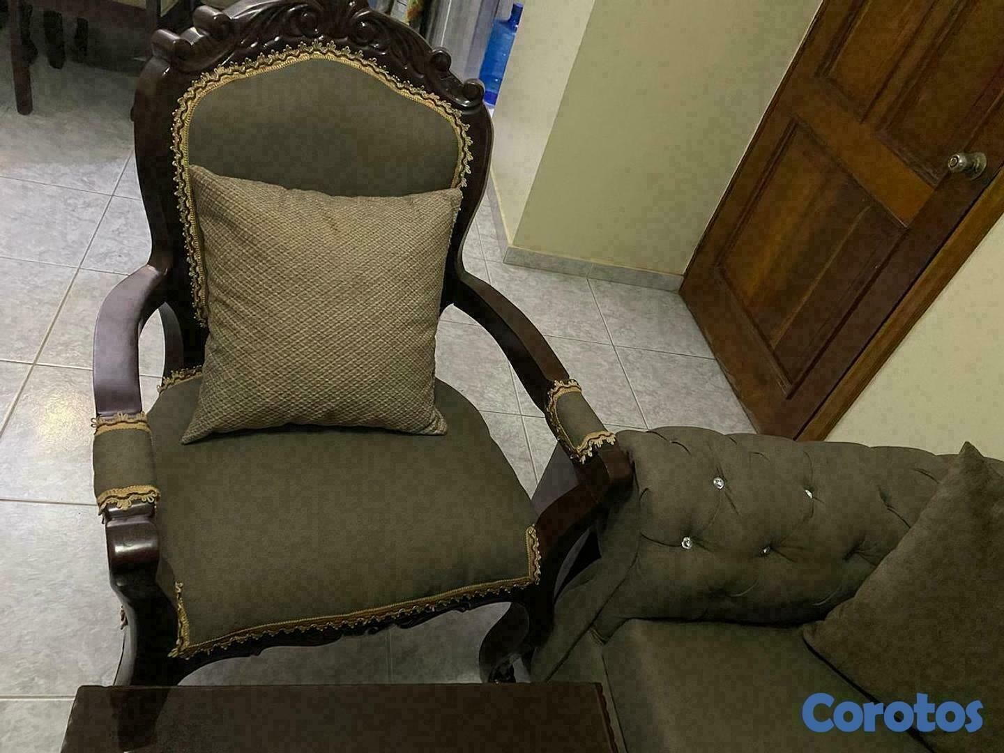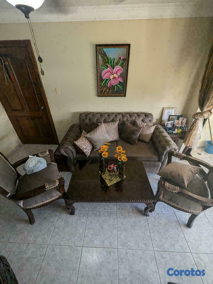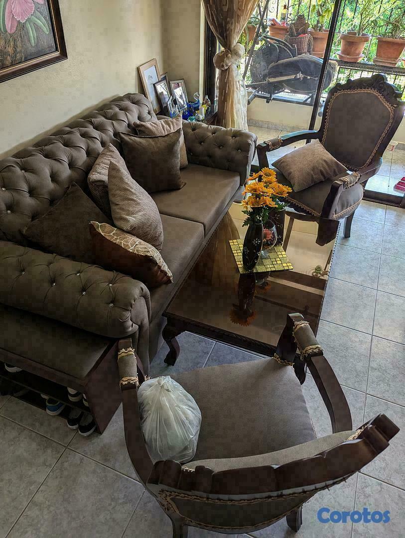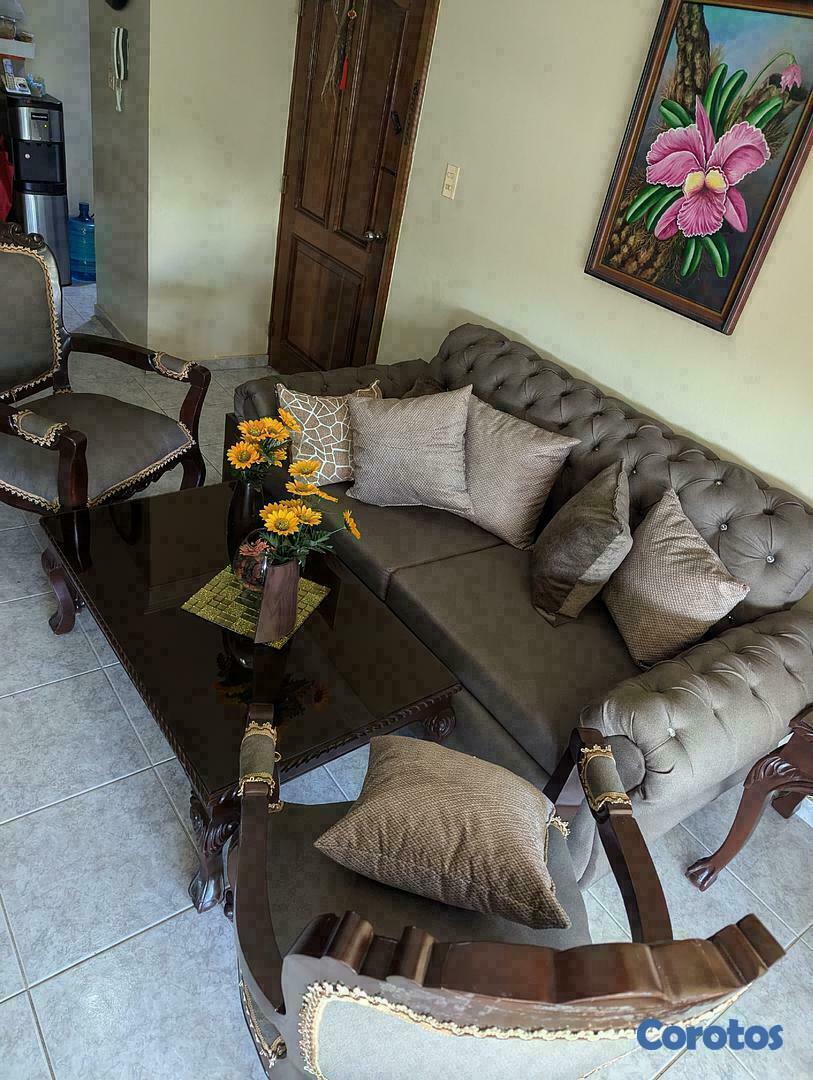 JUEGO DE MUEBLES EN CAOBA, CON DOS MESITAS