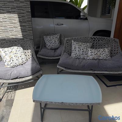 Juego de terraza de 4 piezas más cojines. Con defectos por sol