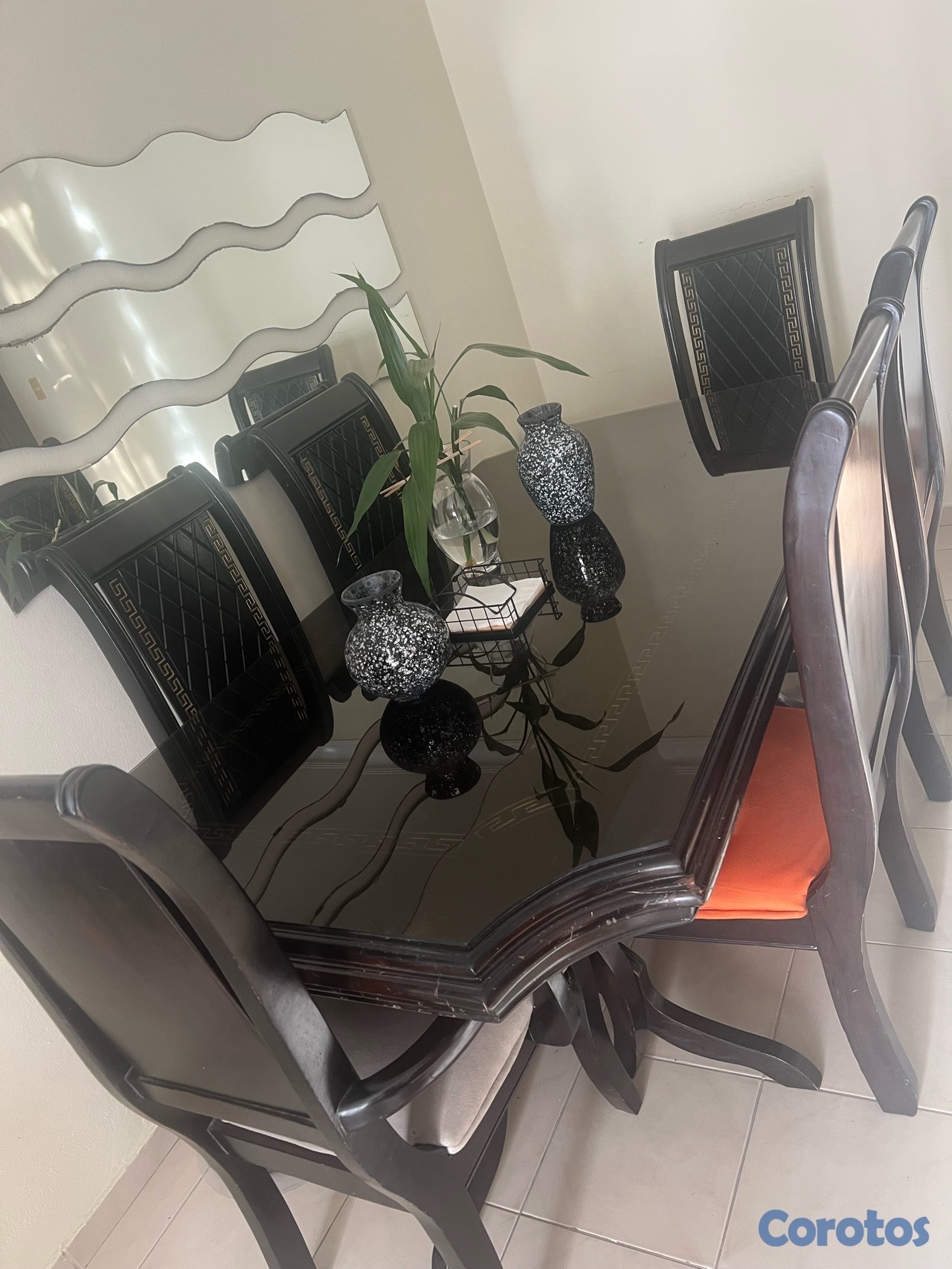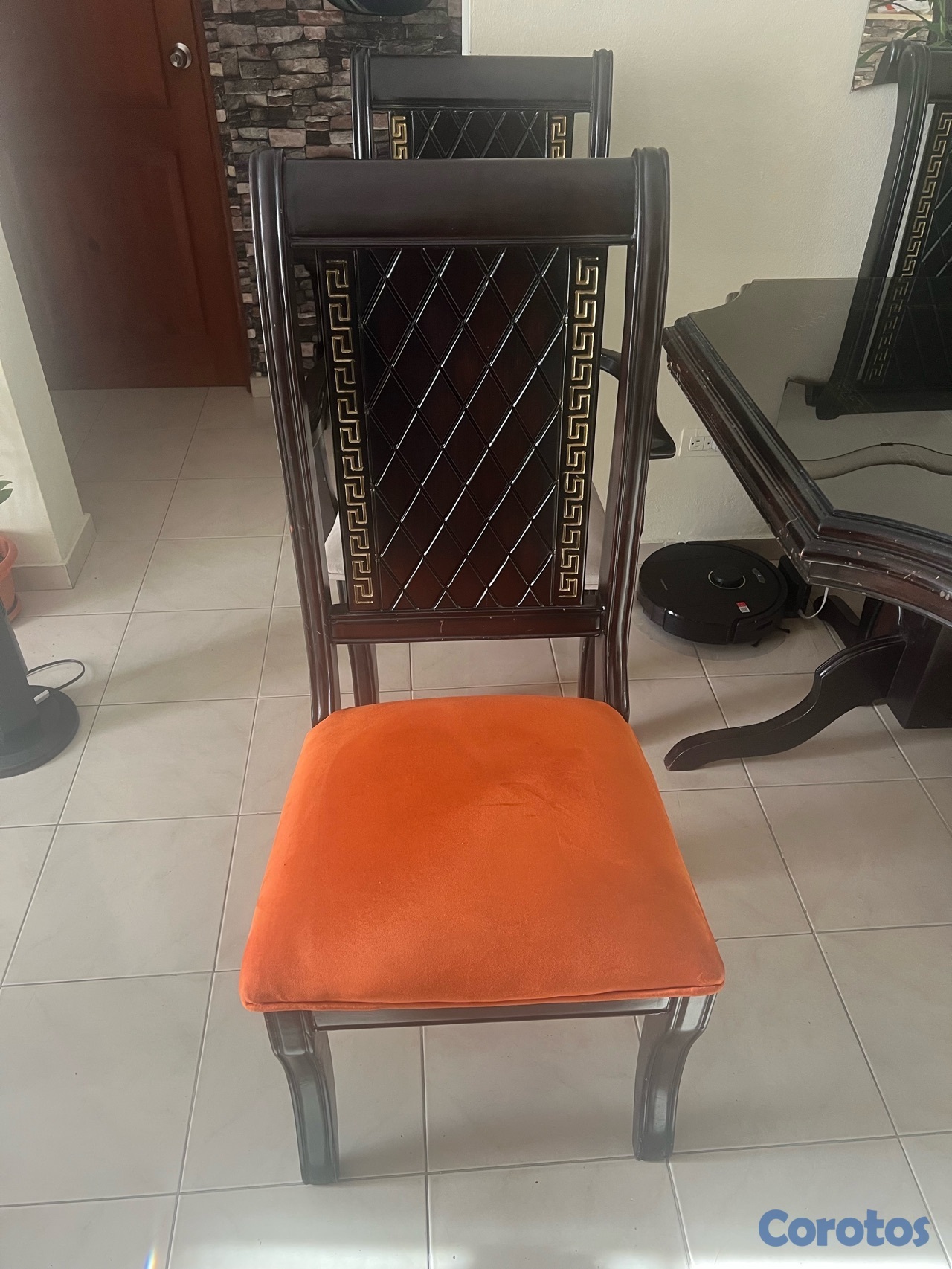 Juego de comer en caoba de 6 sillas
