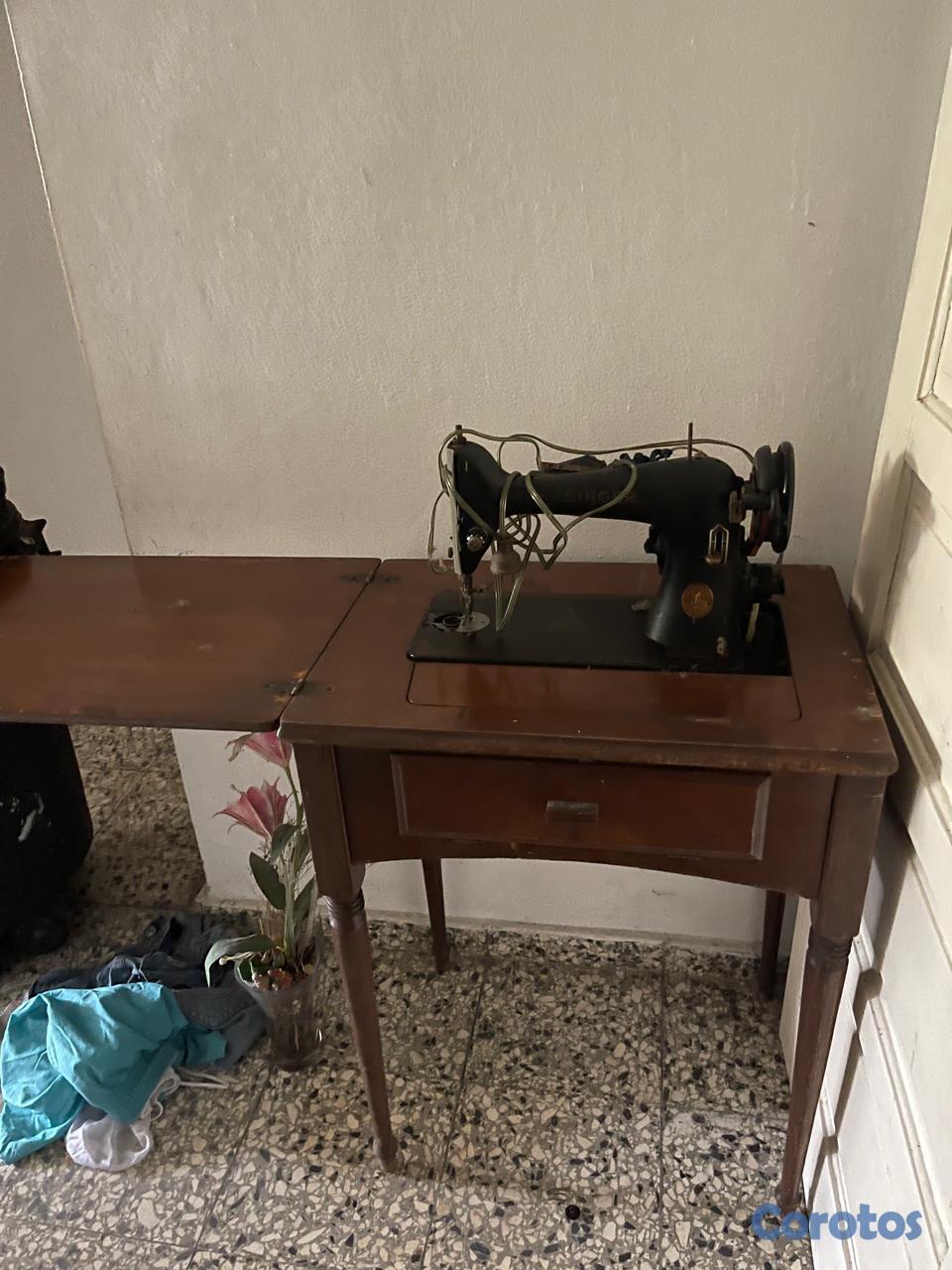 Máquina de coser Singer, eléctrica, antigua, con mueble