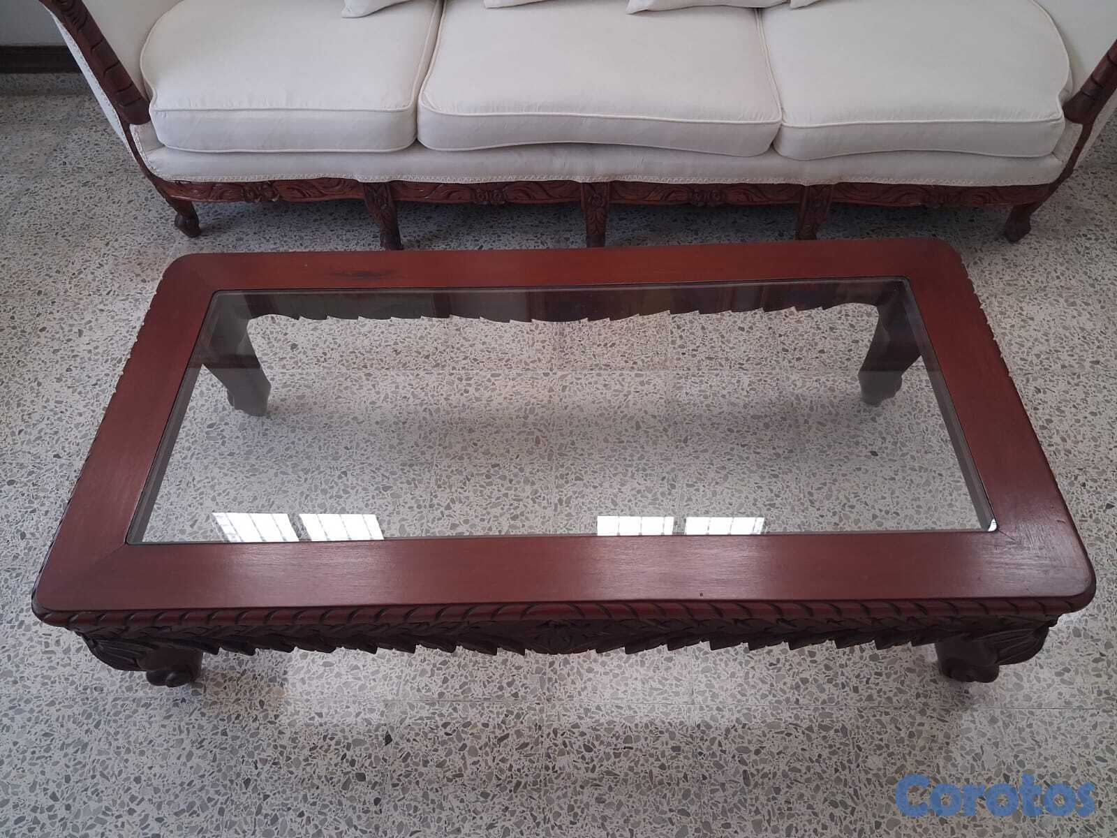 Mesa de caoba con tope de cristal