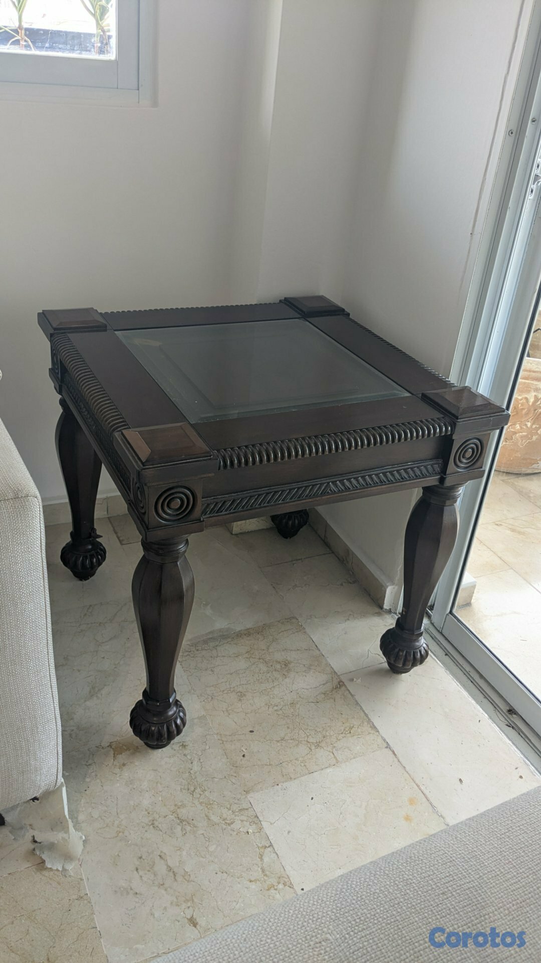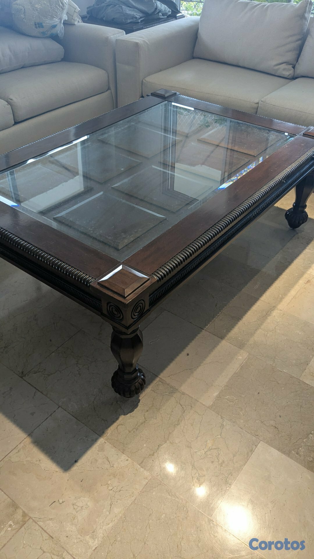 Juego de Mesa de centro con tope en cristal 58"X40" y mesa lateral 26"x26"