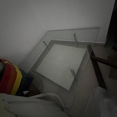 mesa de centro tope de crital grueso y resistente,parte inferior en piel