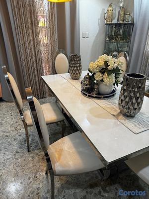 Mesa de Comedor Cristal y Acero Inoxidable Como Nuevo