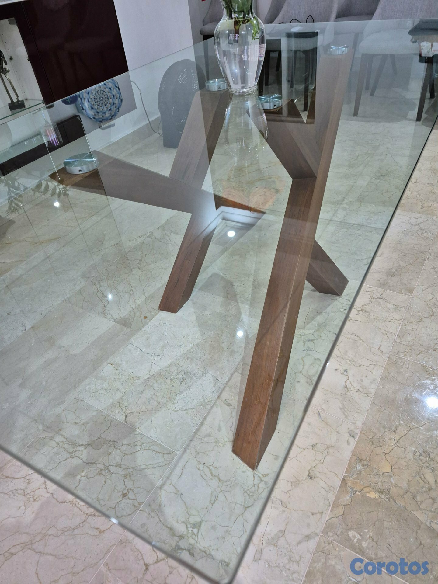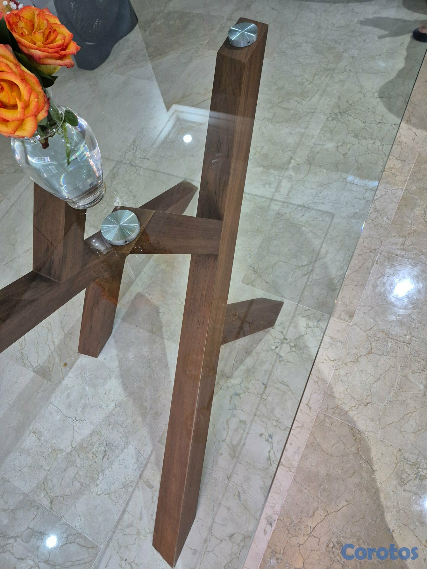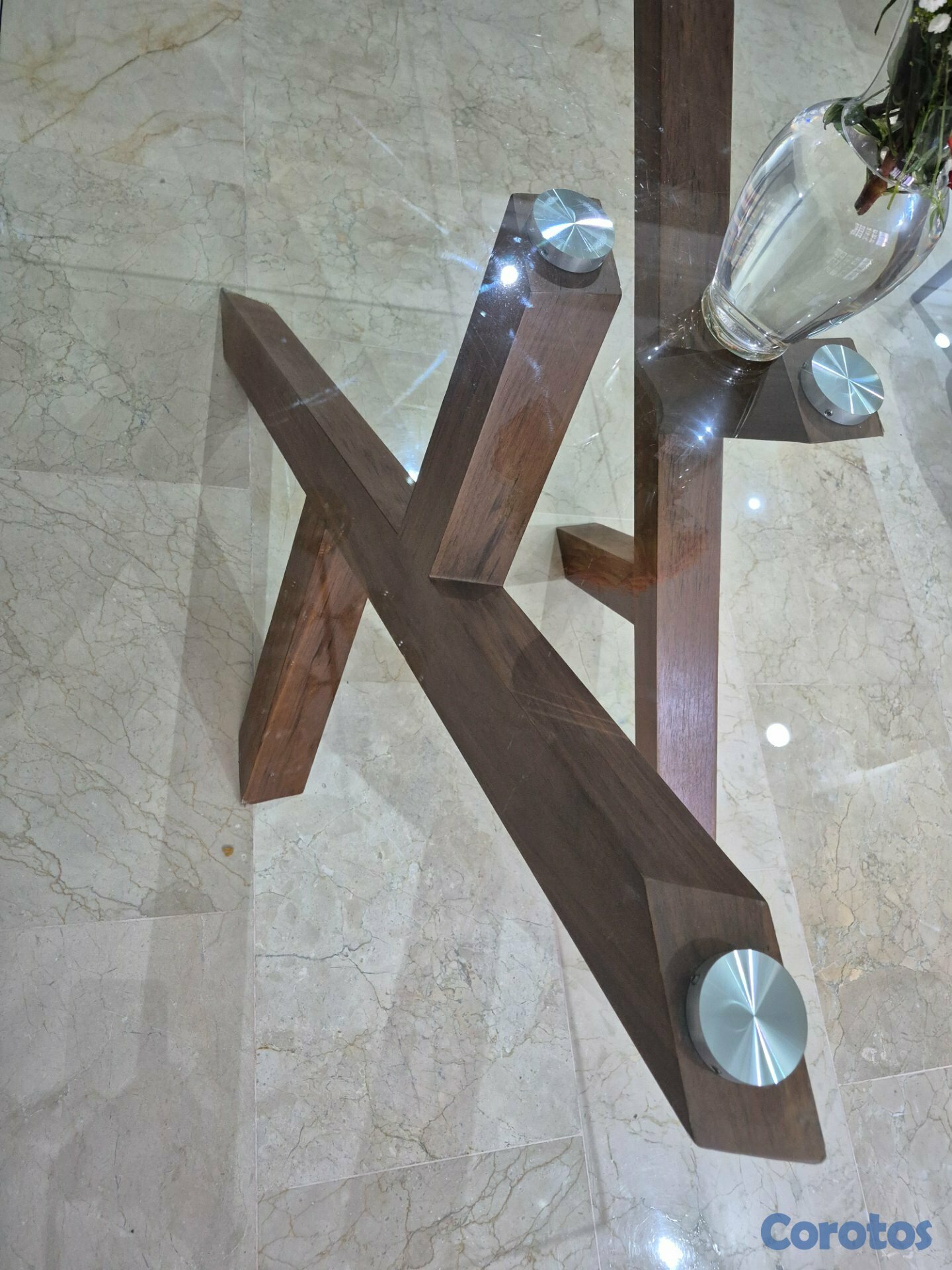 Tope de Cristal y Base de Madera