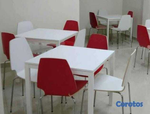 2 mesas de comedor con sillas rojas