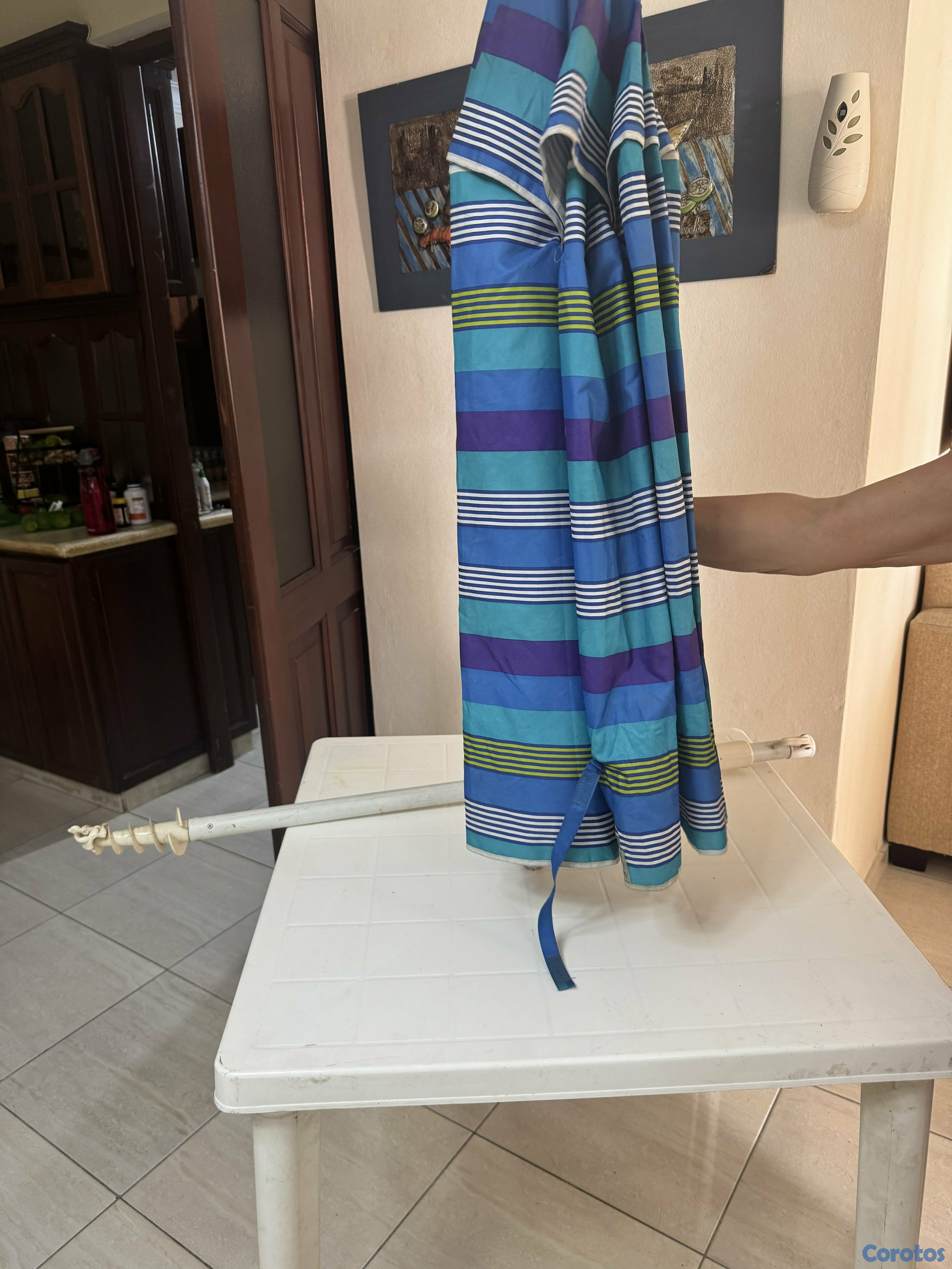 mesa plástica con toldo
