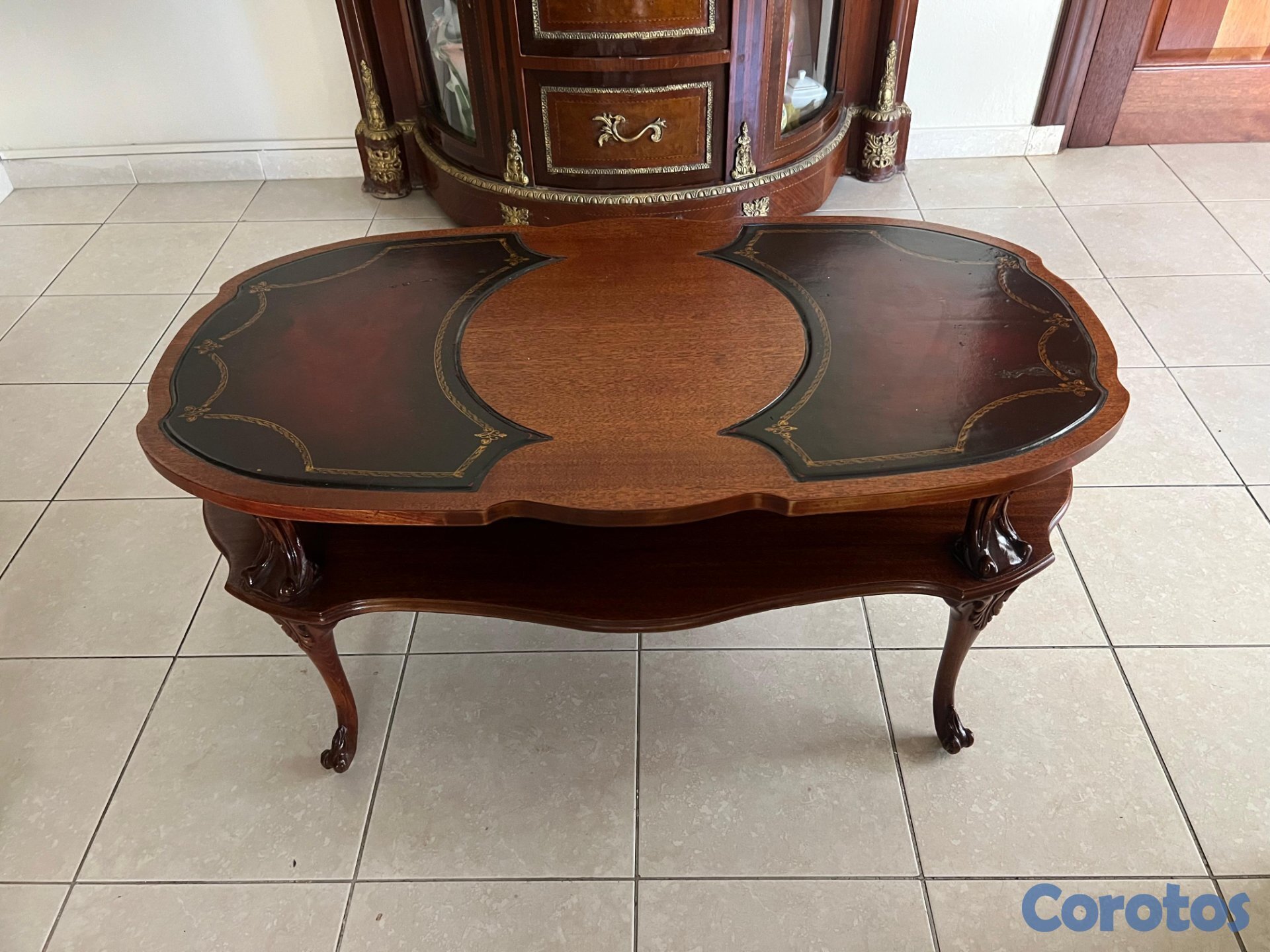 Vendo mesa de centro de 2 niveles en Caoba y Cuero tratado, por razones de espacio. Como nueva.