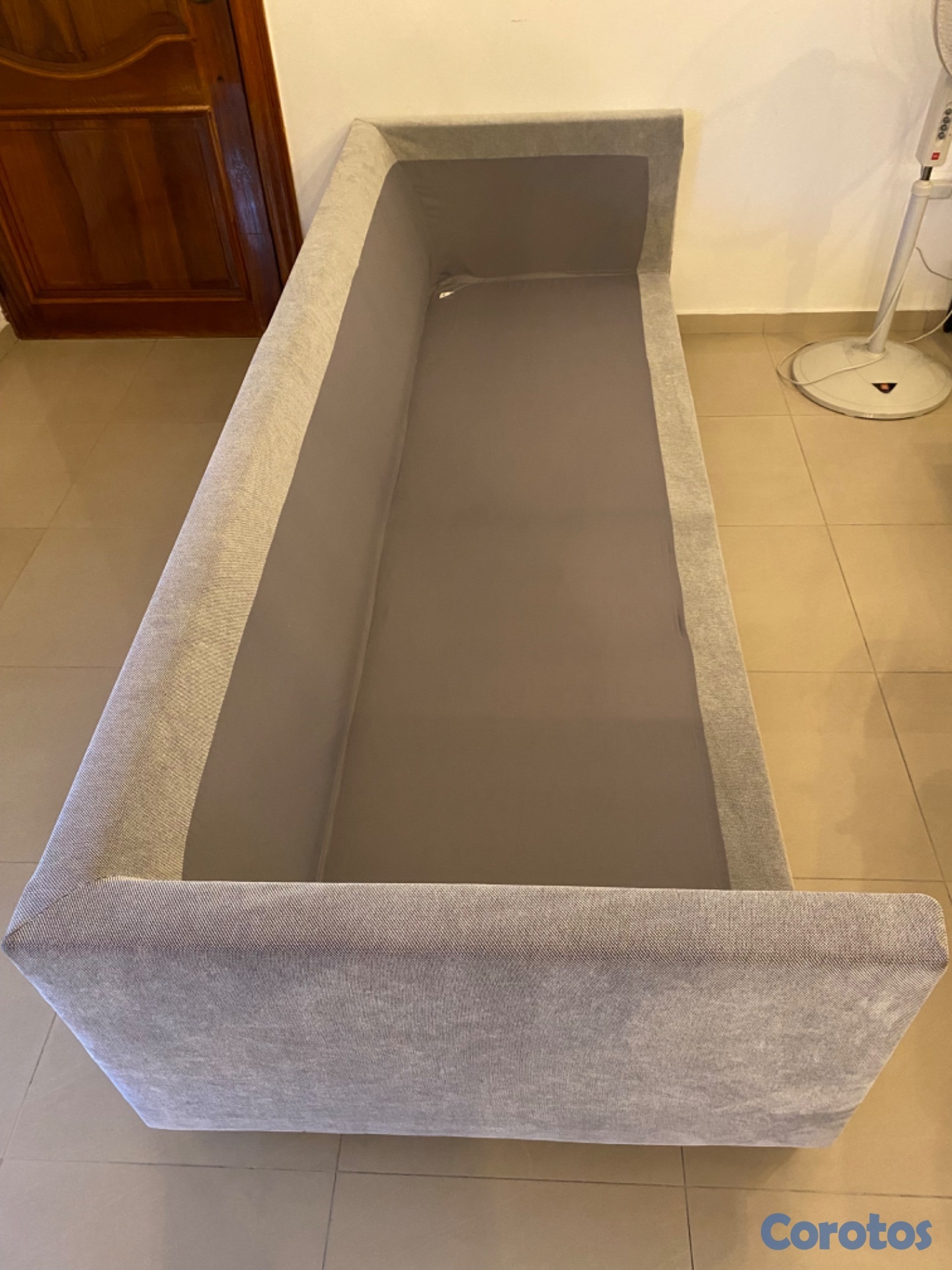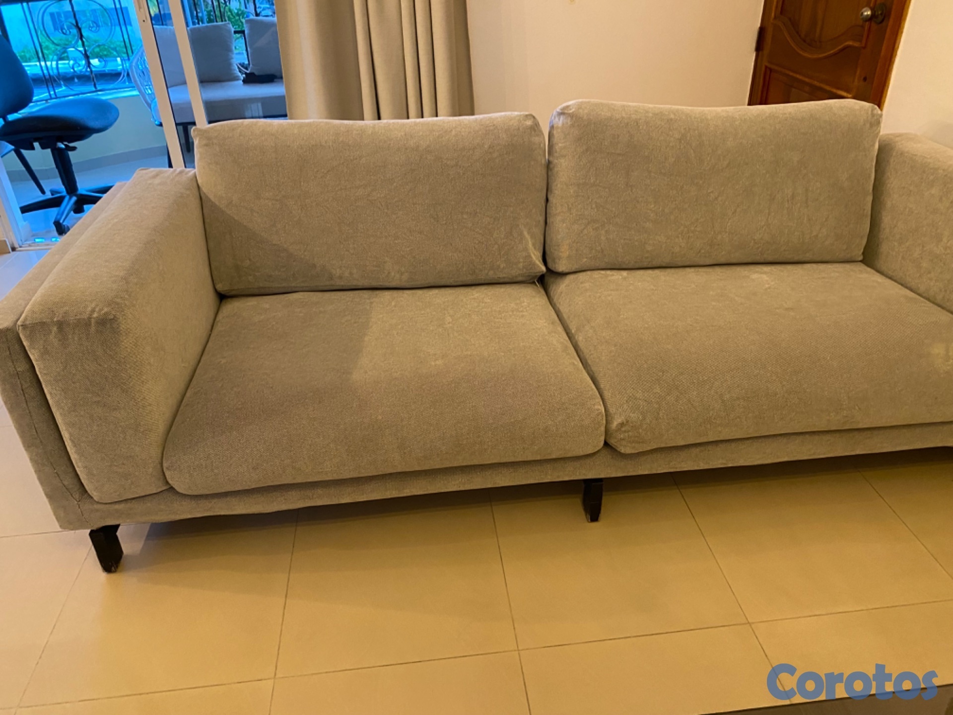 Es un acogedor y espacioso mueble para la sala con la ventaja de que la tela se quita para lavarse.