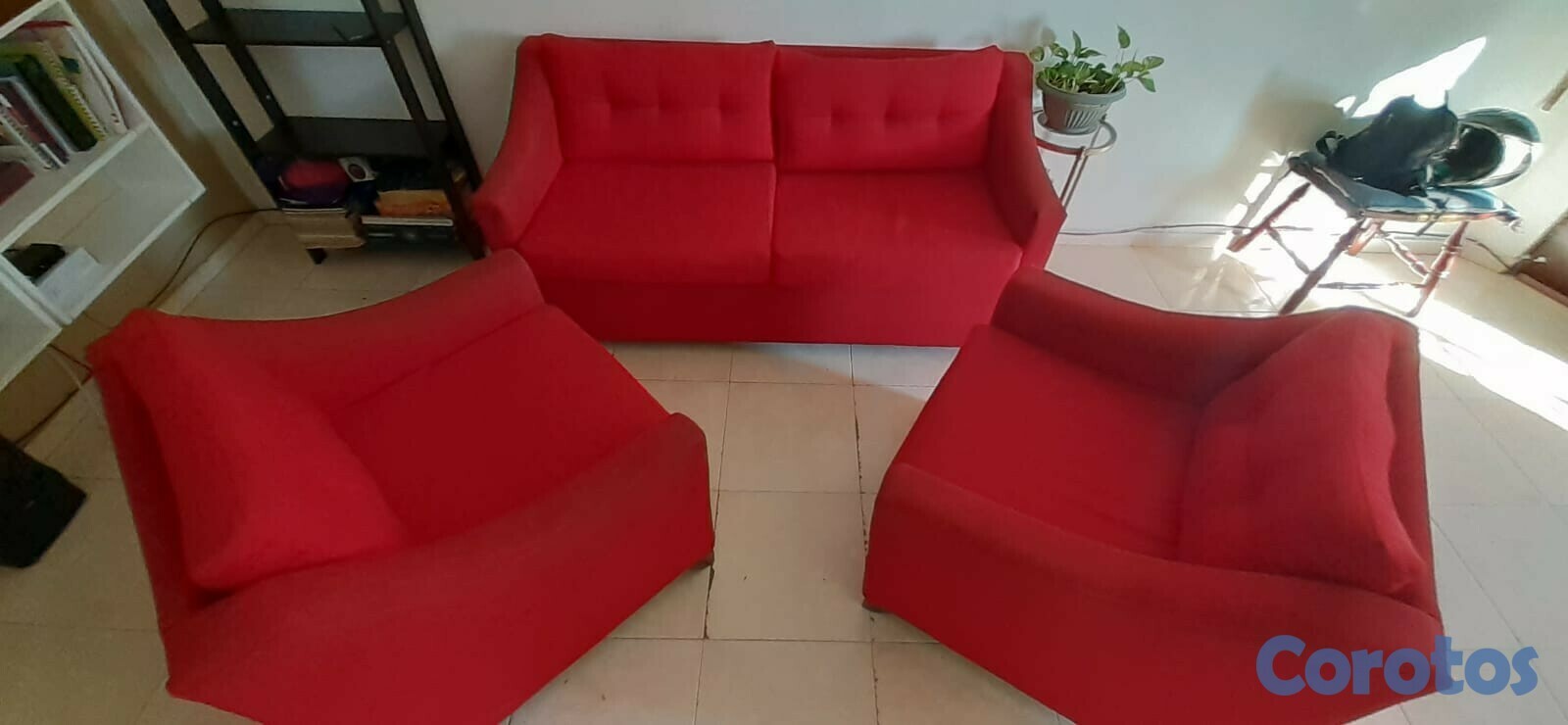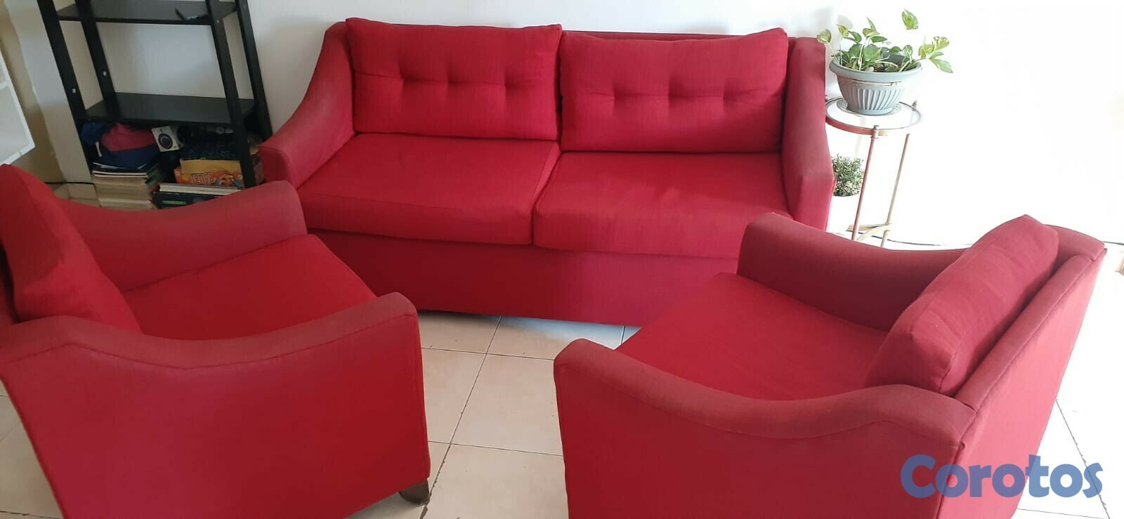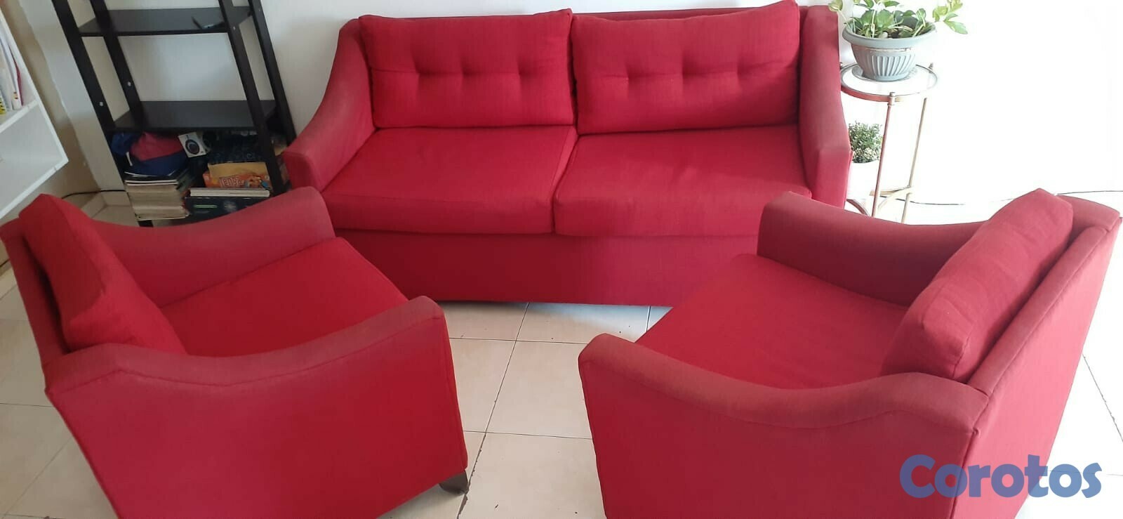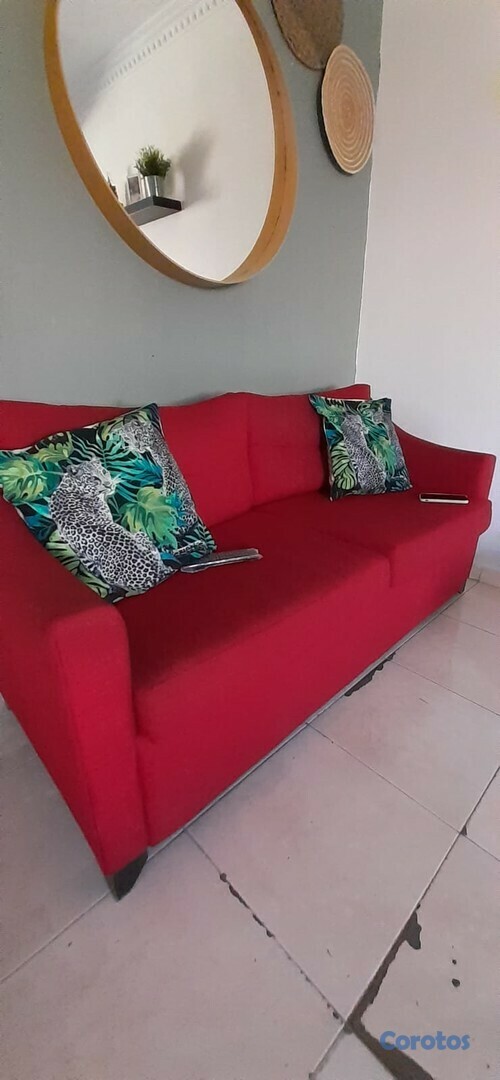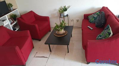 Muebles para sala, rojos , 1 mueble de 3 puestos y 2 muebles de un puesto cada uno. En excelente estado, no rotos, no manchados, poco uso, muy buenos muebles.