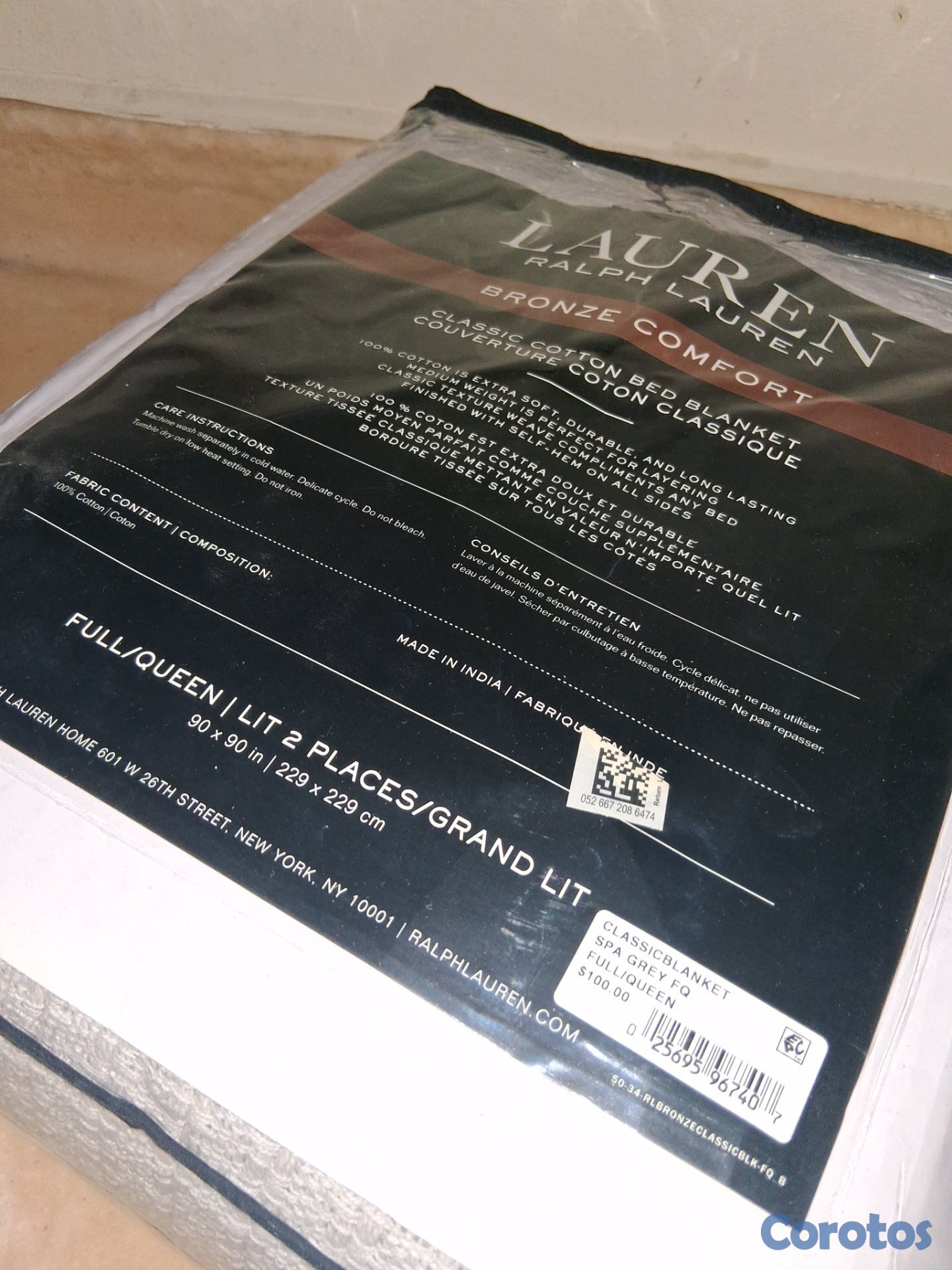Ralph Lauren Manta / Cobertor para cama Full / Queen 90 x 90 Disfruta del lujo cotidiano con esta manta de felpa Micromink de Ralph Lauren. Este tejido ultrasuave ofrece una sensación rica y aterciopelada que es acogedora sin ser pesada, perfecta para la comodidad durante todo el año. El clásico color gris se combina a la perfección con la decoración de cualquier dormitorio o sala de estar. Condición: Nuevo con etiquetas (NWT) • Ideal para usar como capa en la cama, para relajarse en el sofá, para habitaciones de invitados o como regalo • Lavable a máquina para un fácil cuidado. Solo una. Precio $2,000 (Valorada en US$100.00) Recoger en Aparta Hotel Atalaya (al lado de la Funeraria Blandino Lincoln) entrega gratis en la parada del metro Francisco Caamaño o envíos disponibles con costo adicional dependiendo de su ubicación a cualquier provincia a traves de Vimenpaq.
