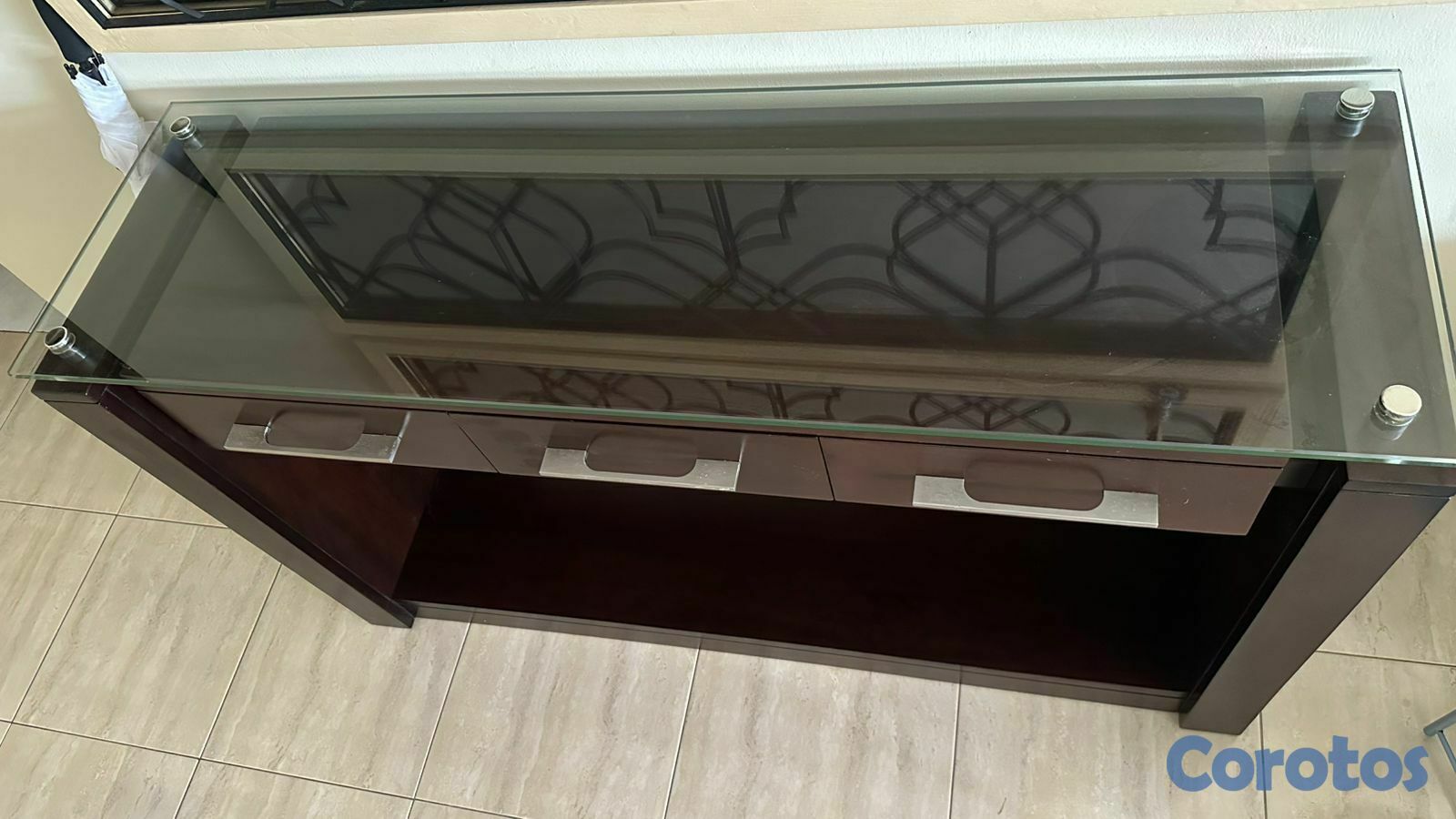 se vende hermosa credenza en caoba y cristal. NEGOCIABLE