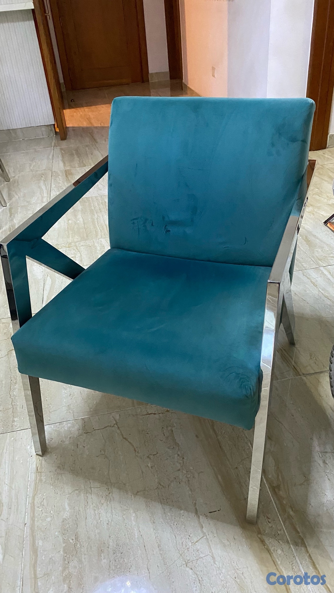 Diseño moderno con estructura metálica y tapizado suave en color azul, cómodos y elegantes.