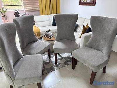 vendo 4 sillas color gris tapizada con patas en maderas, excelente condiciones