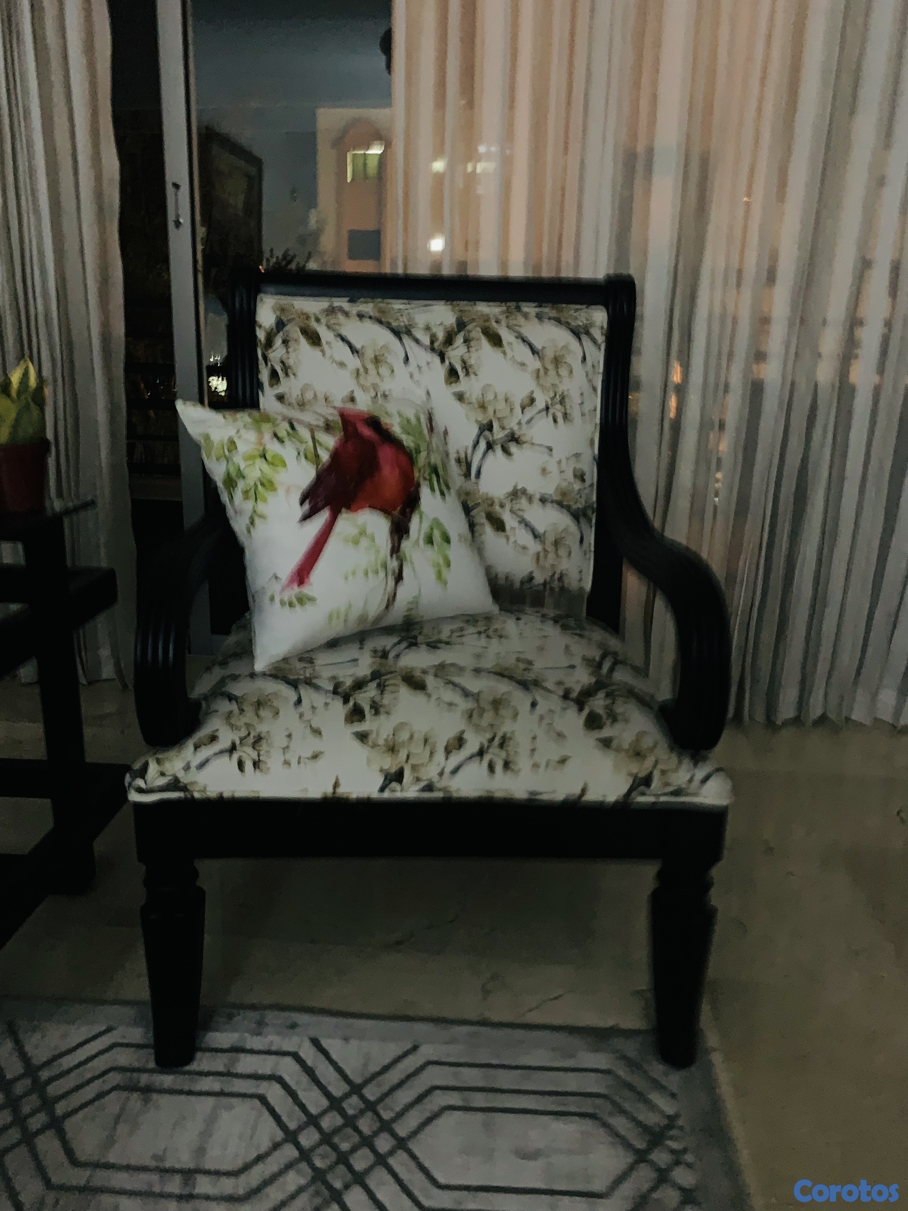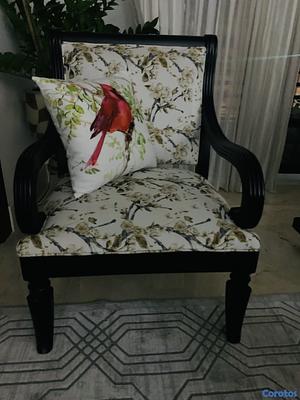 Estás Sillas están Excelentes Condiciones y están Tapizadas de la excelente Tela. Es de caoba