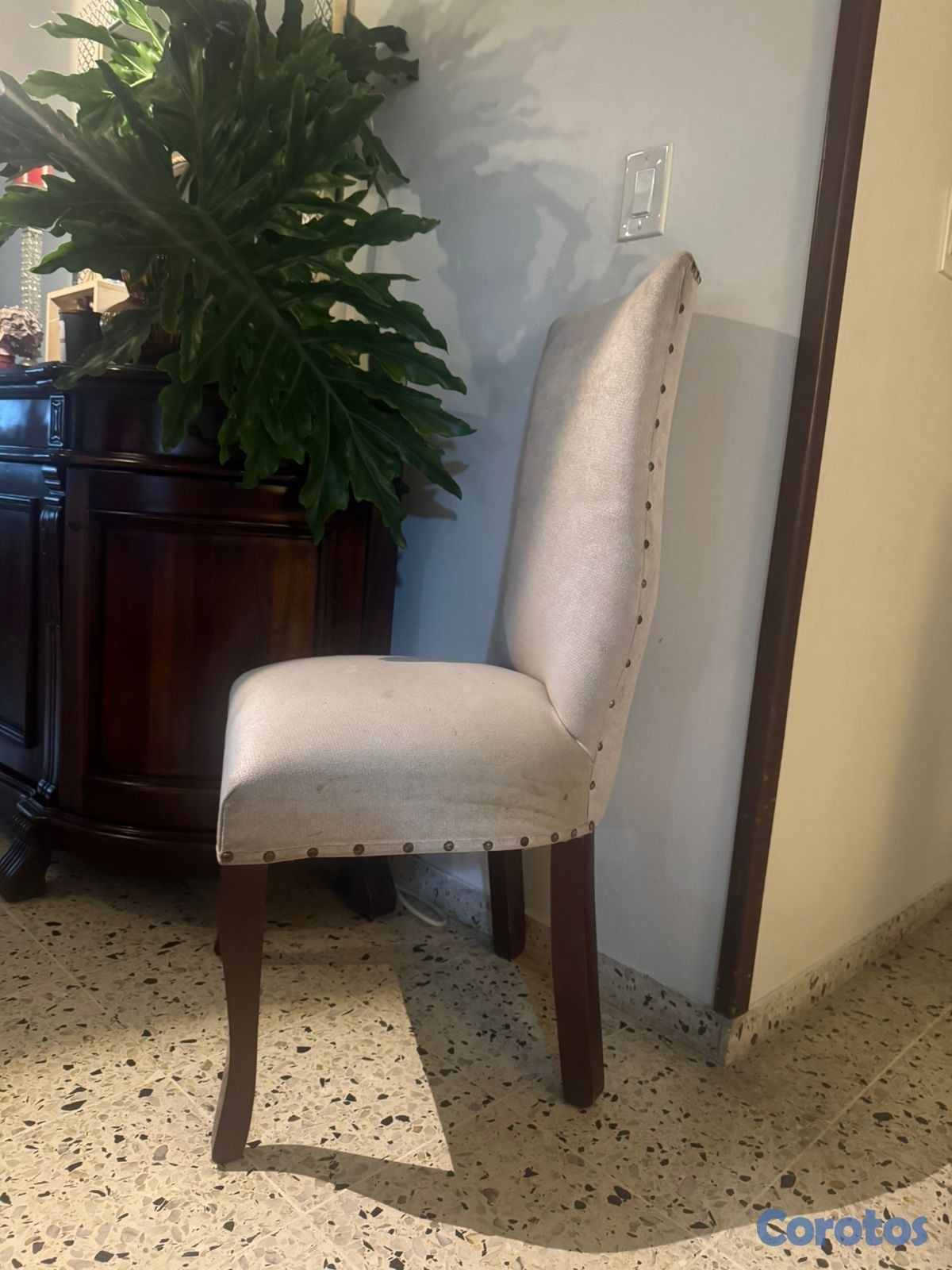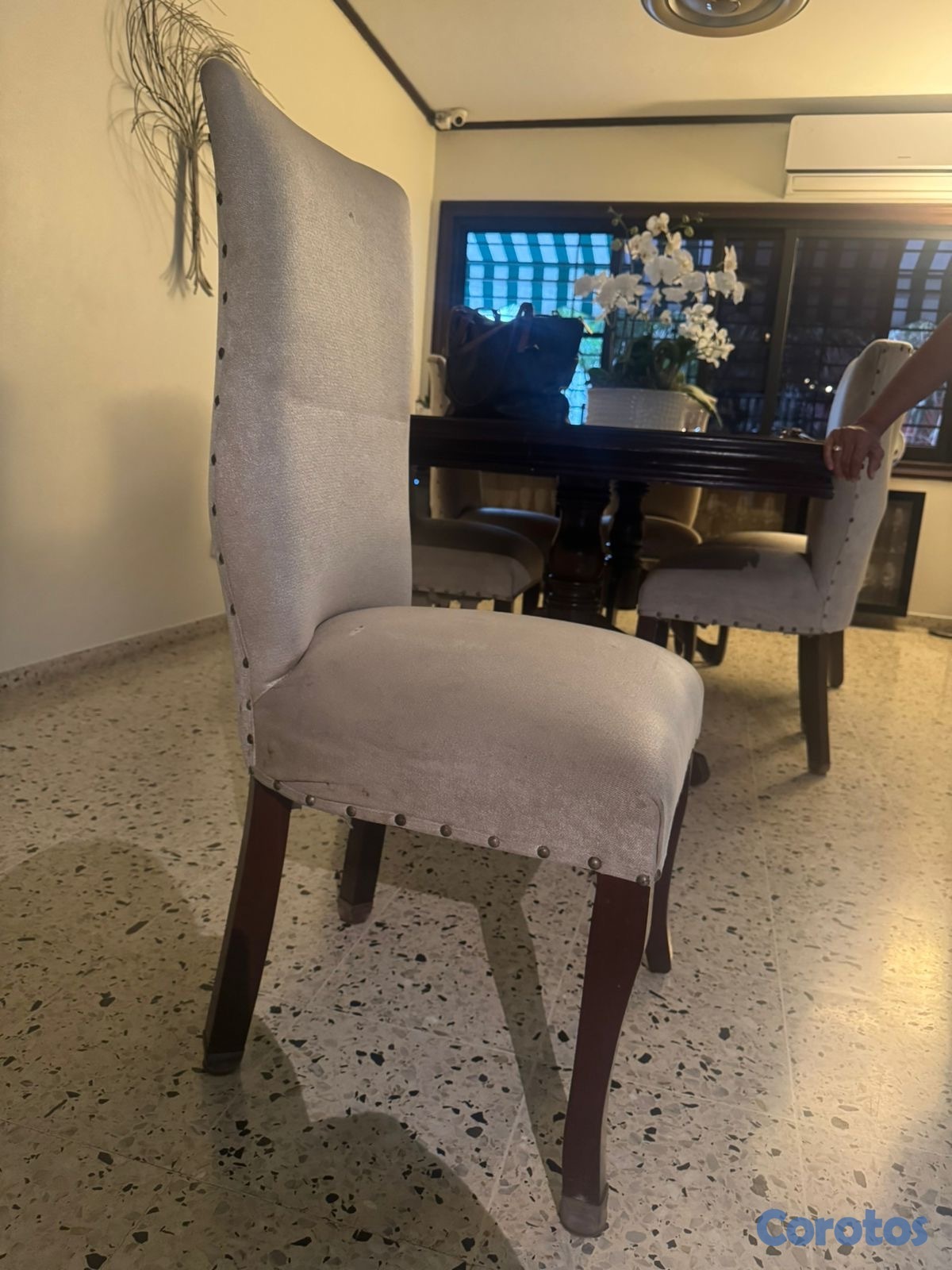 Vendo sillas de comedor tapizadas. La madera interior es caoba. Súper buenas condiciones.