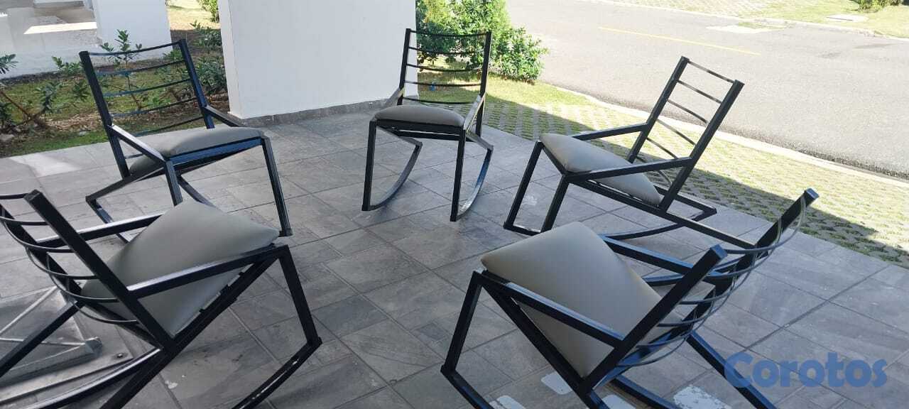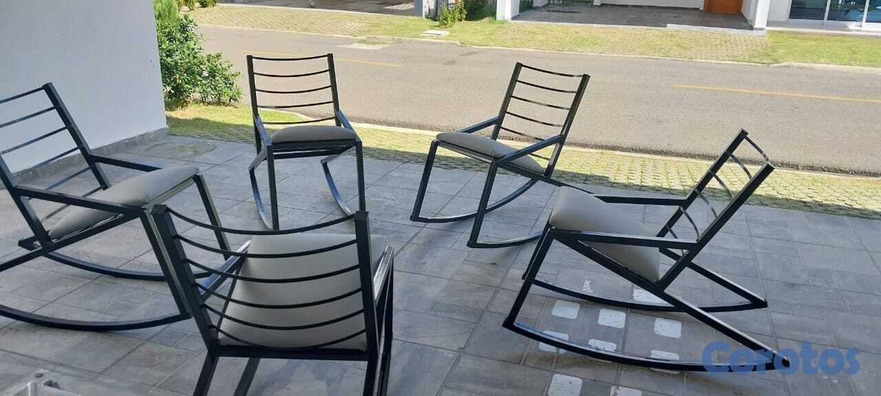 Se venden 5 sillas mecedoras de estilo moderno en excelente estado, prácticamente nuevas. Estructura resistente de metal en color negro con diseño elegante y contemporáneo. Asientos acolchados en tono claro, muy cómodos y en perfecto estado.