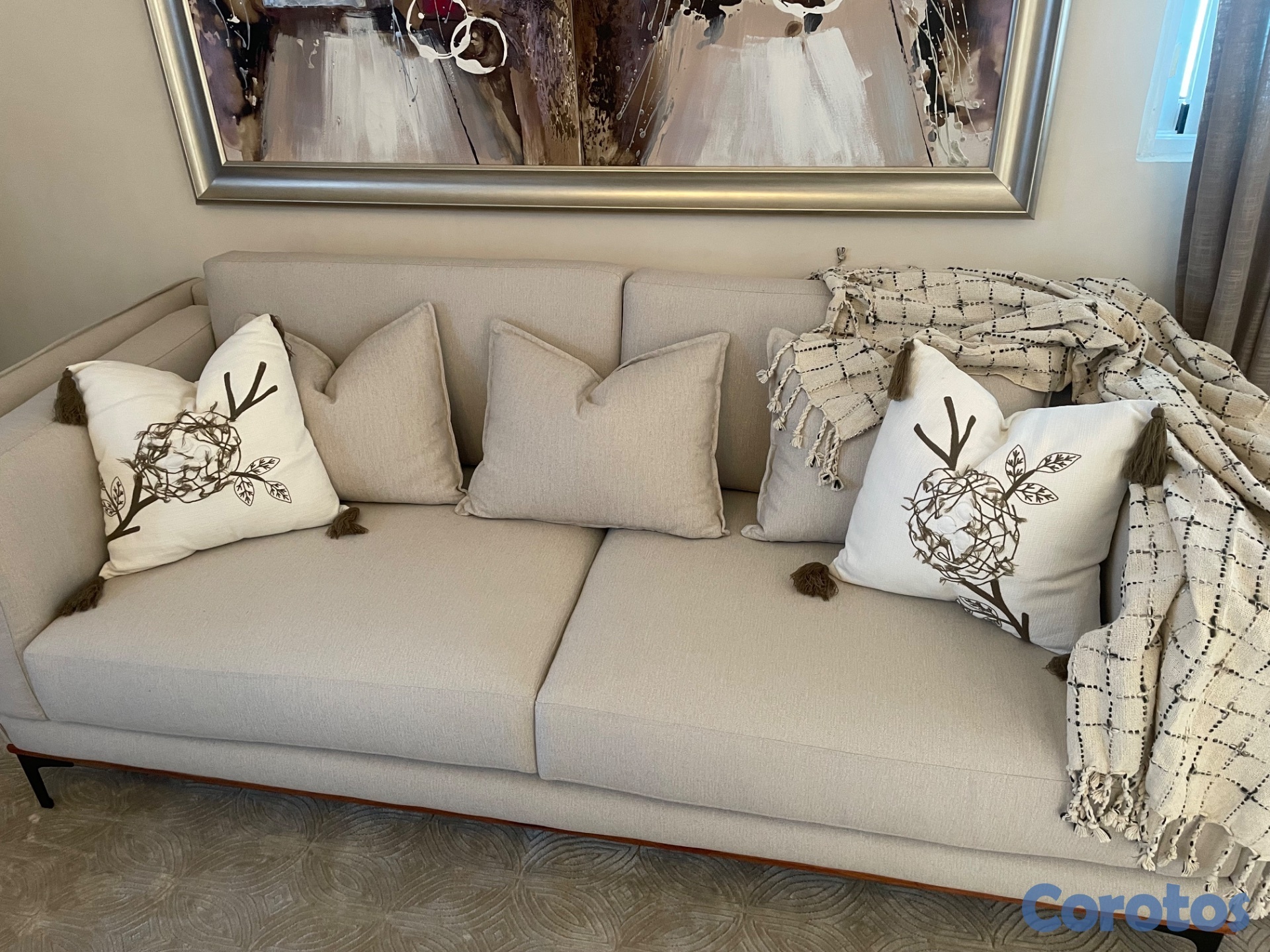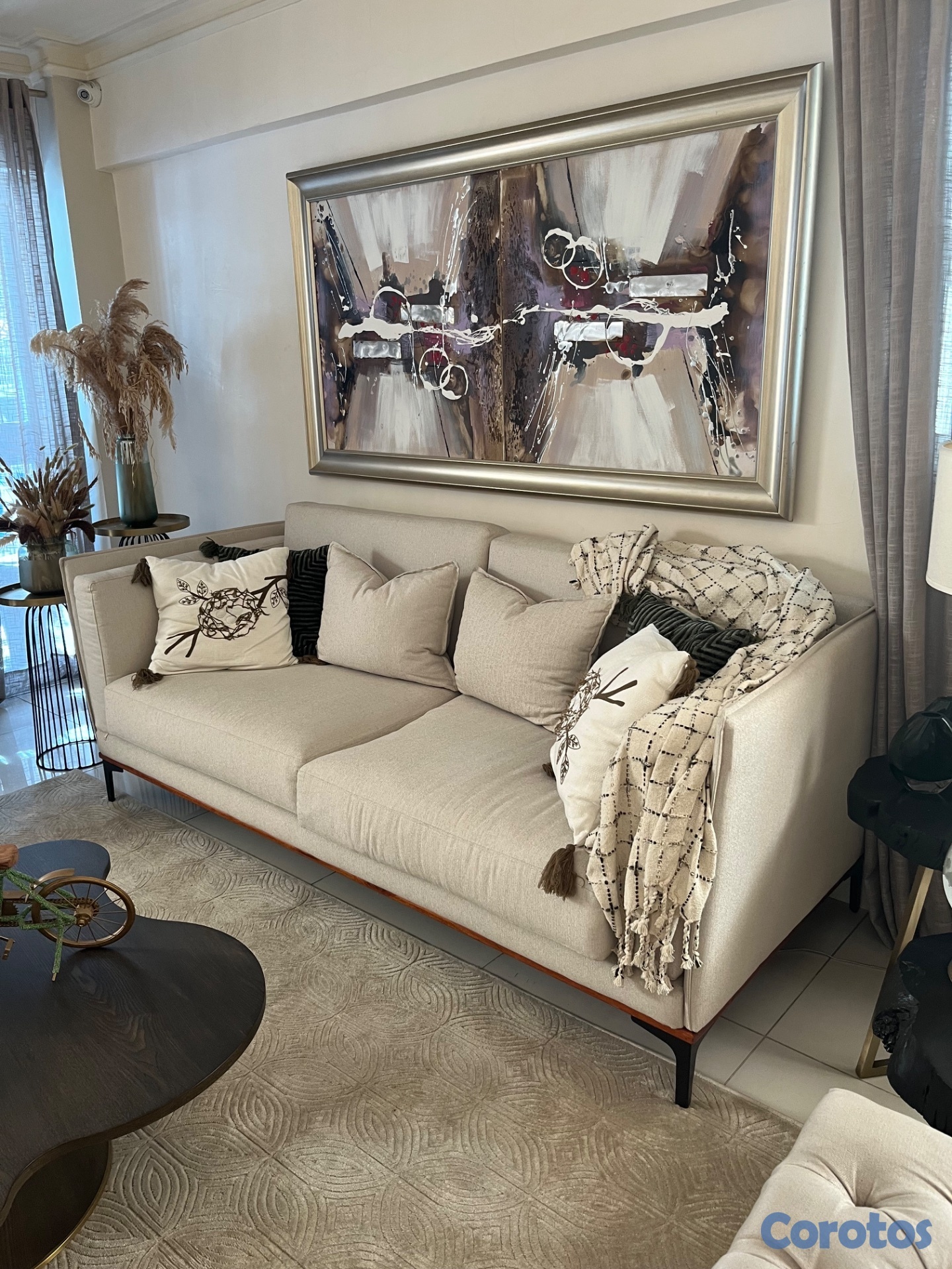 Sofá blanco hueso de dos plazas, hermoso, como nuevo, está en una sala de poco uso solo tiene un año en esa sala de ese apartamento donde no hay niños solo dos adultos. Hermoso y moderno. Precio $29,000.00