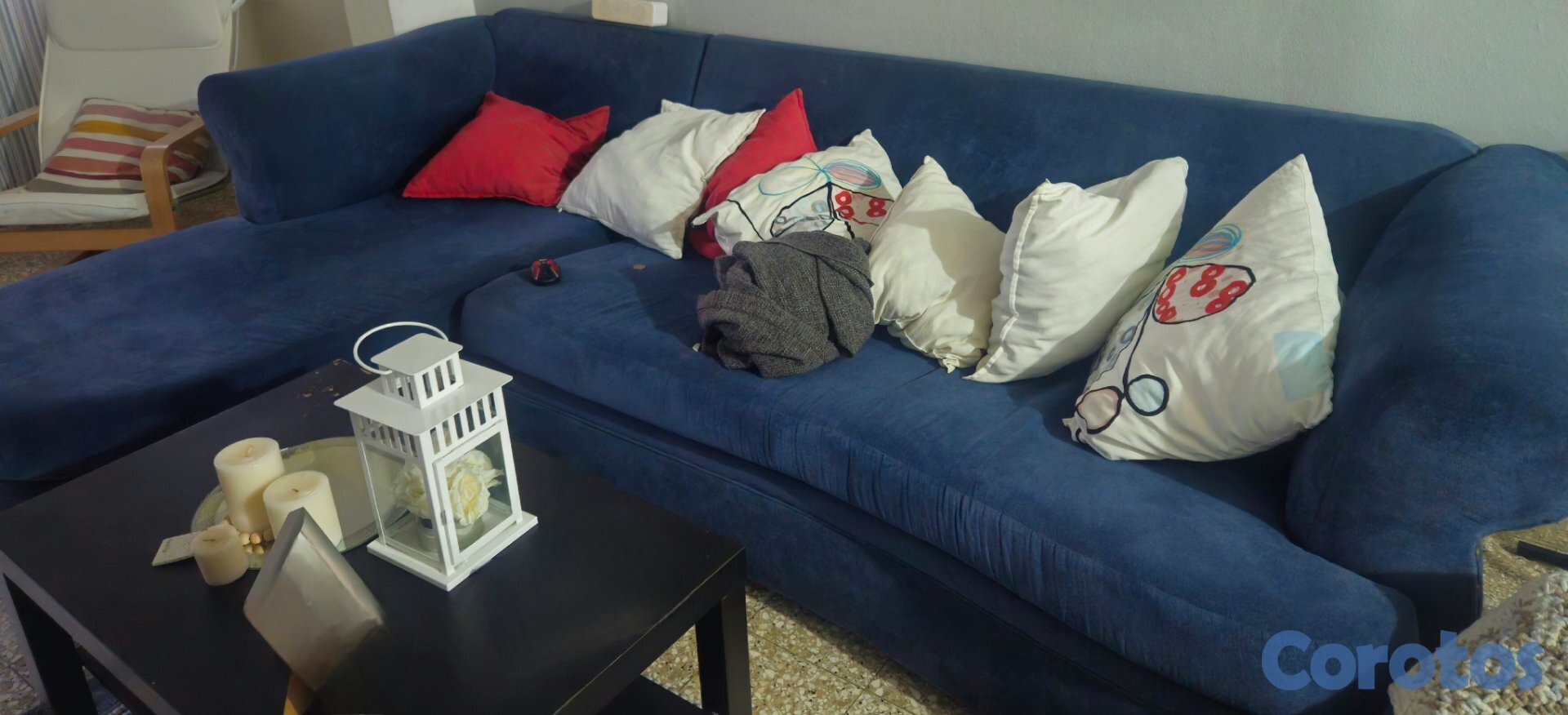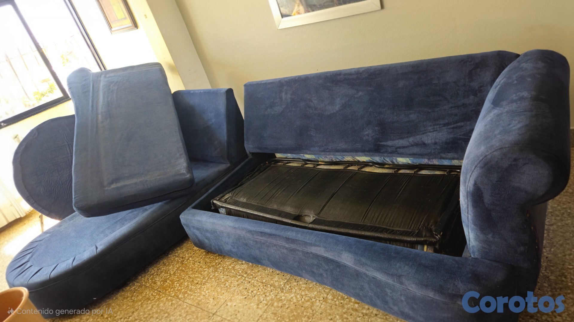 Se vende sofa cama cama en forma de L, grande. Color azul oscuro. Solo debe cambiarle el colchon base.