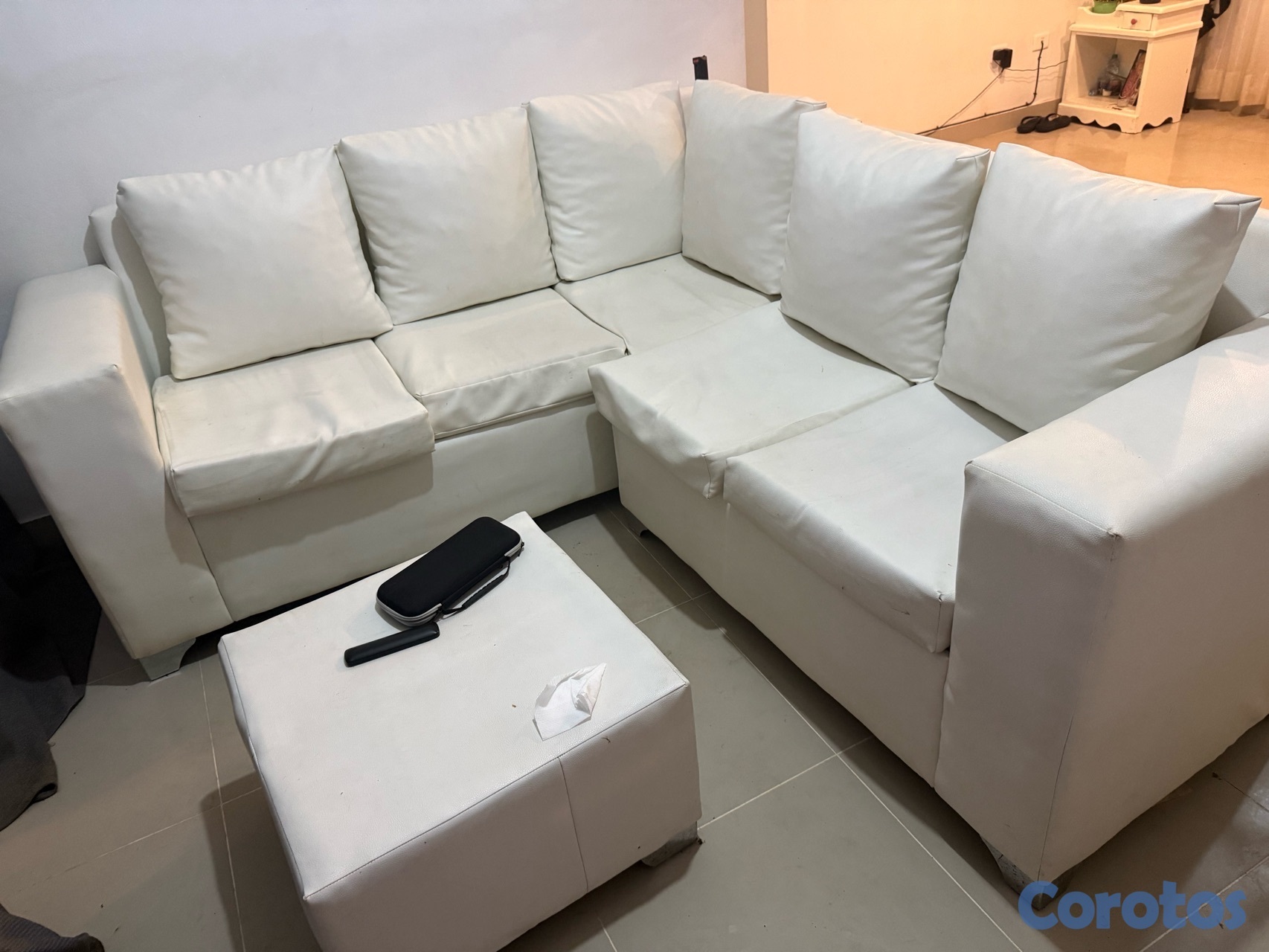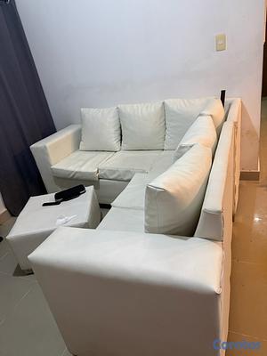 Sofa en L, material lether, reposapiés