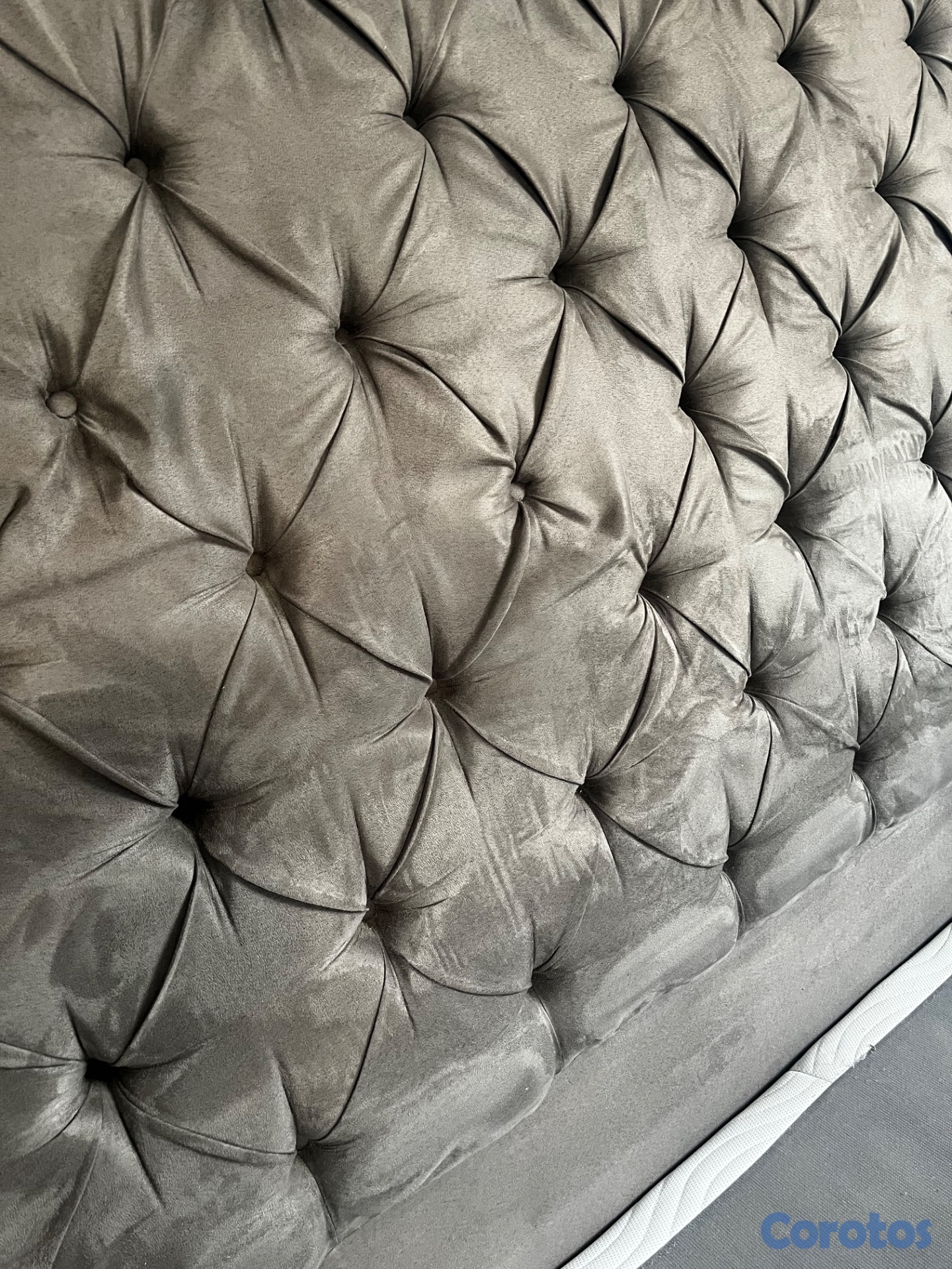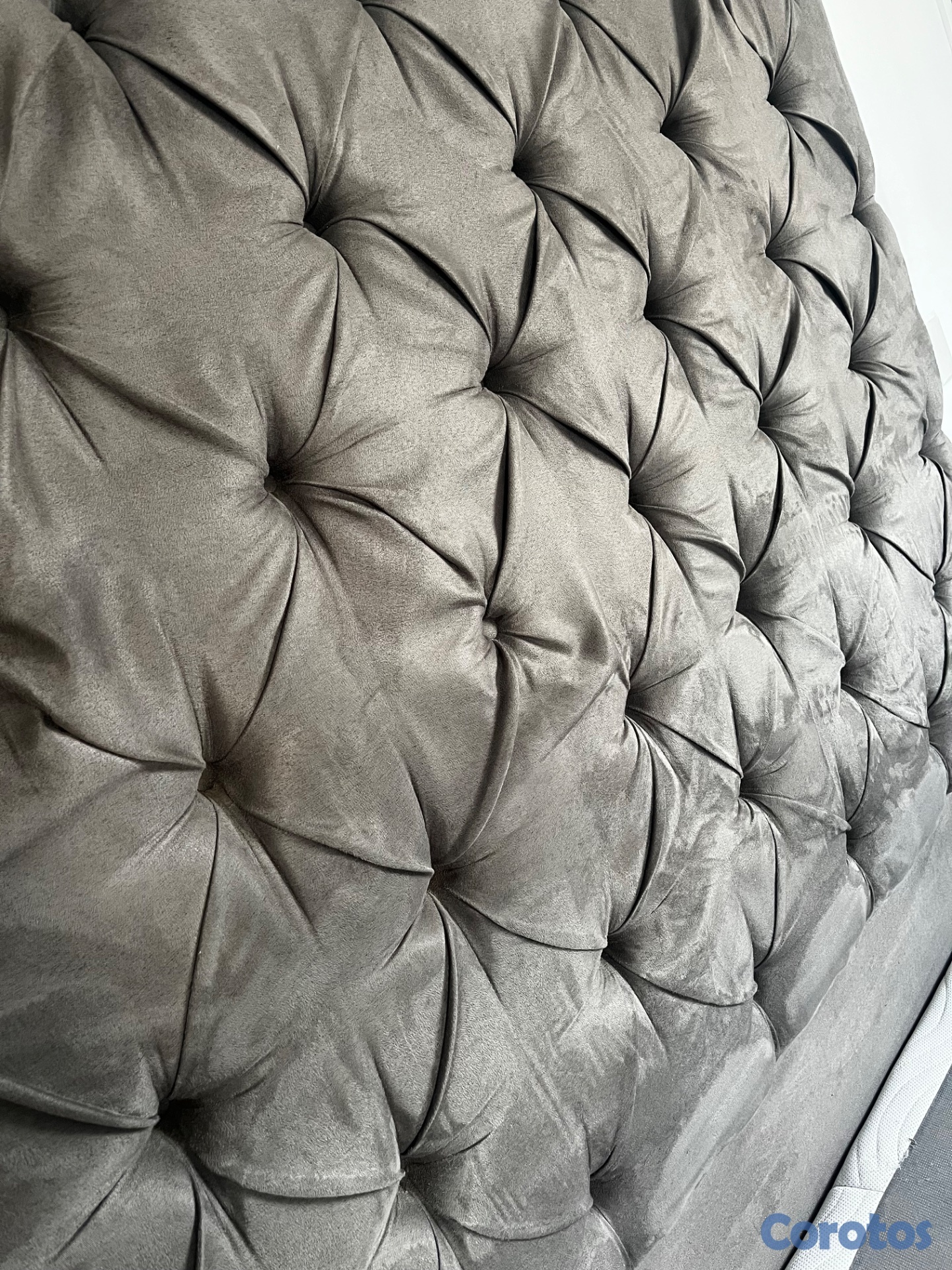 Cabecera en tela gris capitoneada