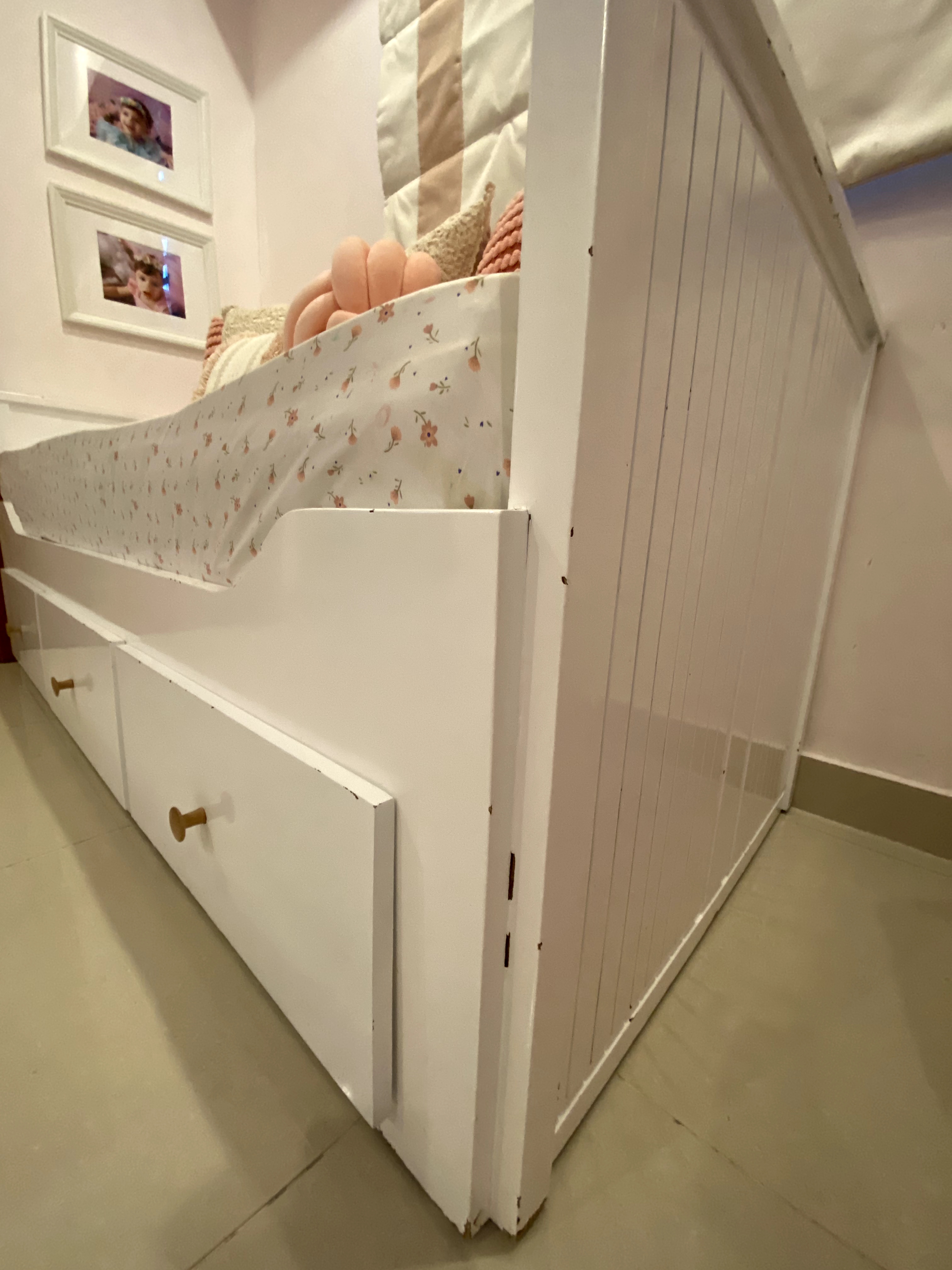 Vendo daybed en buenas condiciones, hecho en pino tratado. Tiene señales de uso que se corrigen con poca pintura.