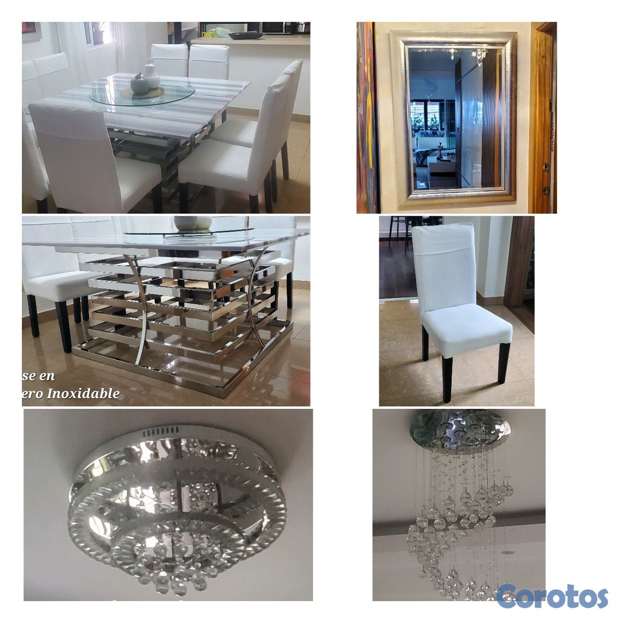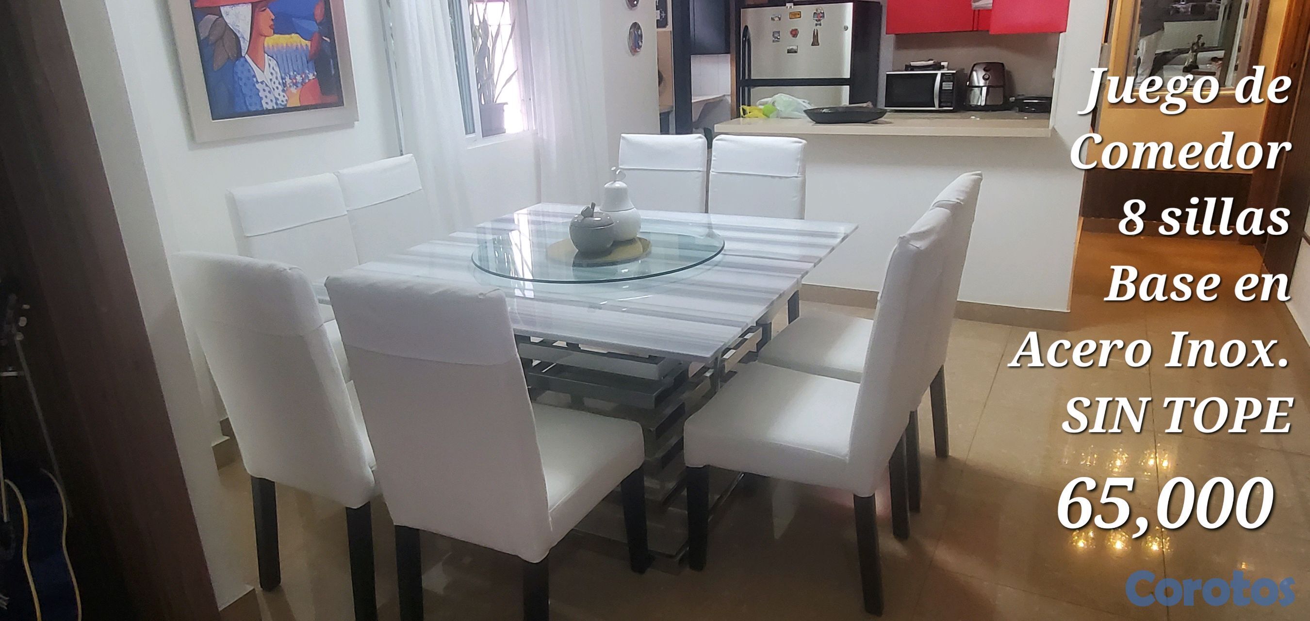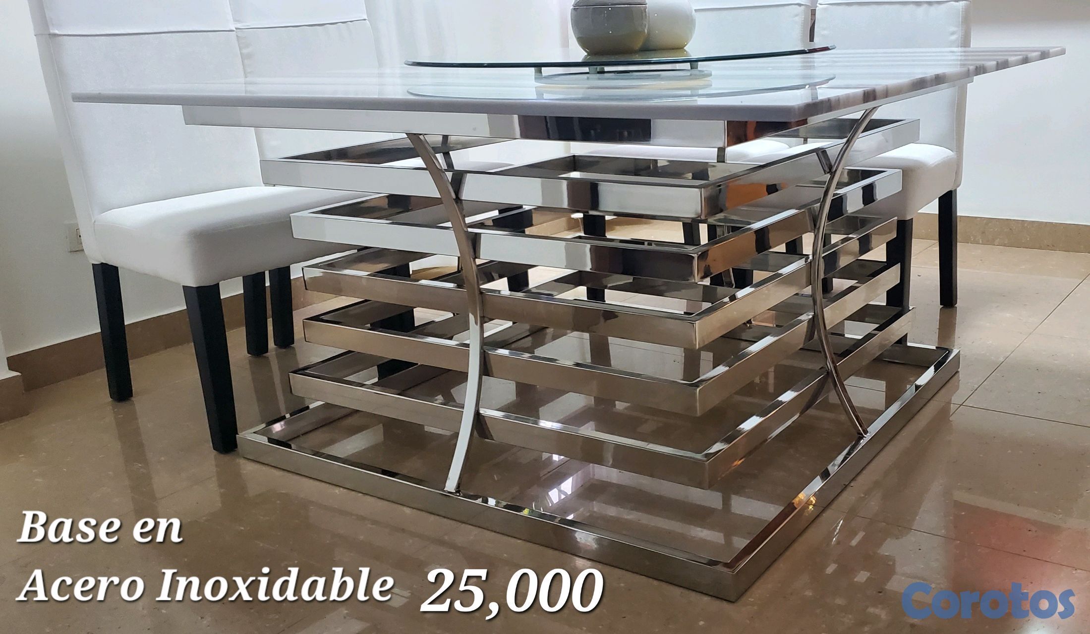 Comedor de 8 sillas con base en acero inoxidable (sin tope) 65,000