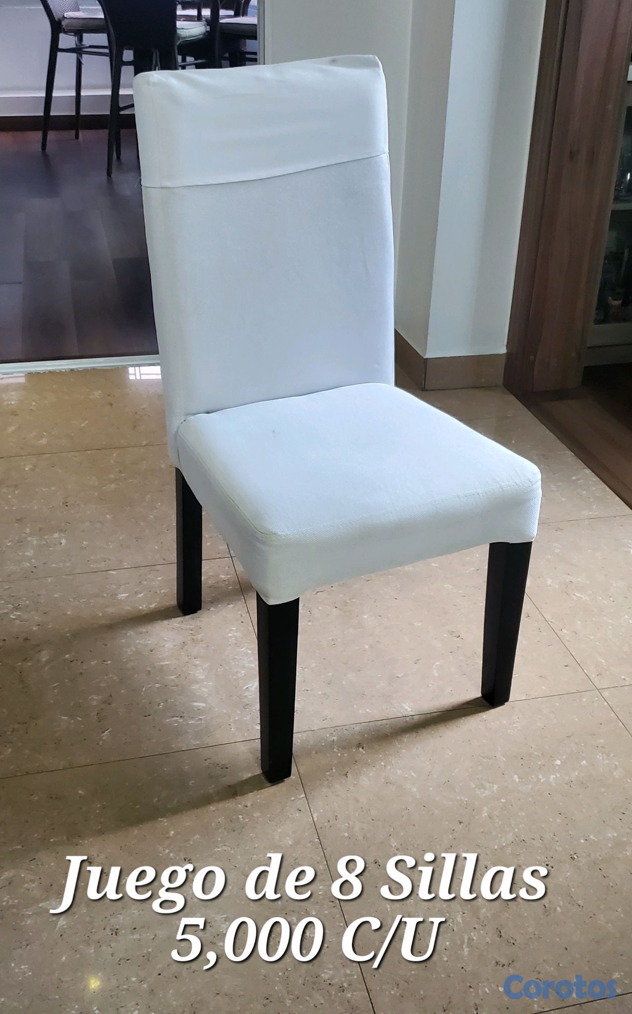 silla en tela y madera (caoba laqueada) (8) 5,000 cada una