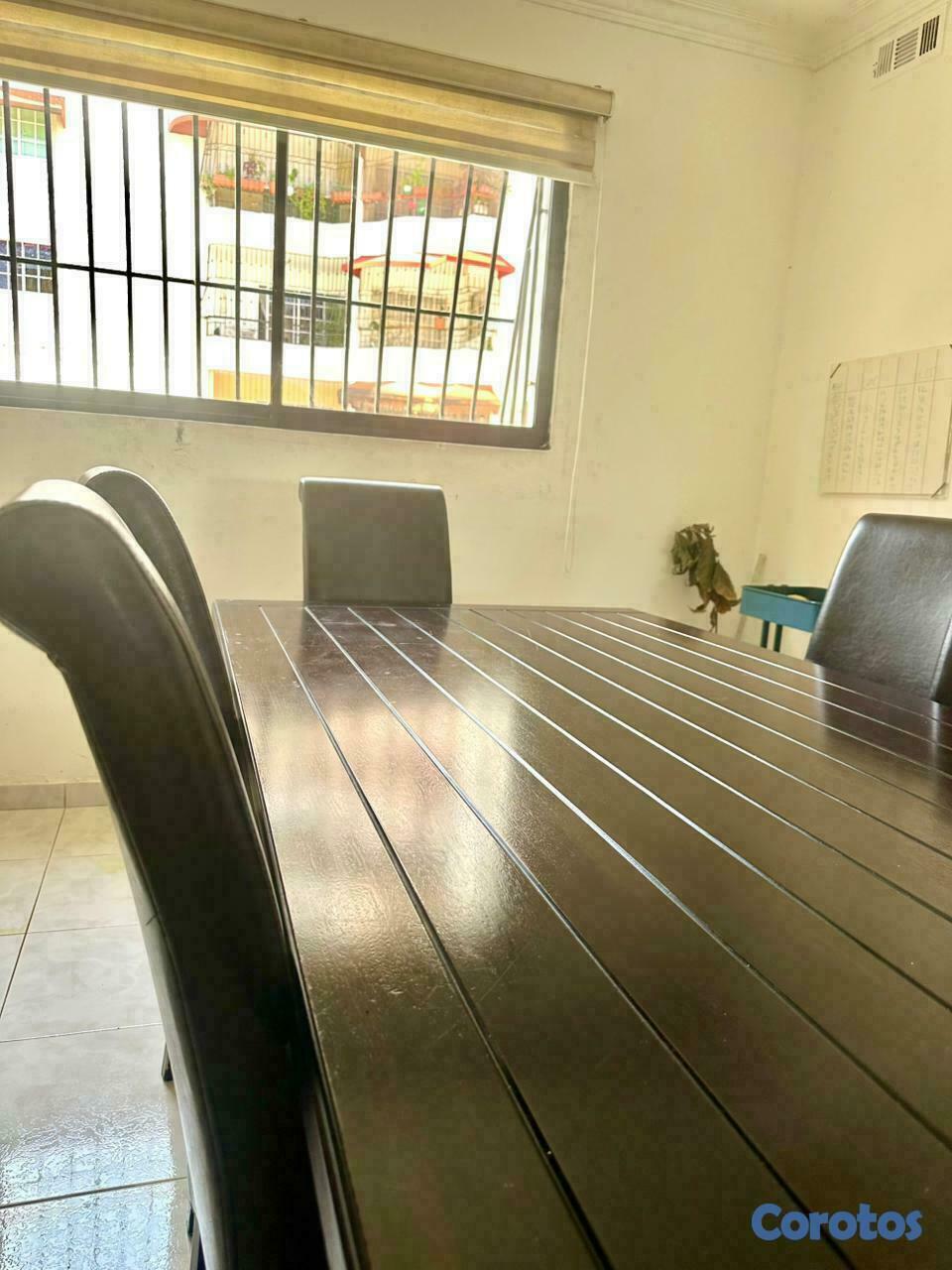 Vendo juego de comedor importado de Sudafrica que incluye 1 mesa y 6 sillas en buenas condiciones. Sillas en piel. No incluye transporte, ubicacion en Evaristo Morales, Distrito Nacional.
