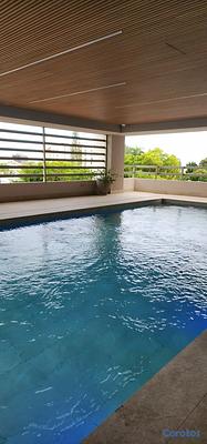 Apto. 1 habitación, 1.5 baños, 1 parqueo techado, sala, comedor, cocina, área de lavado, piscina, gym,