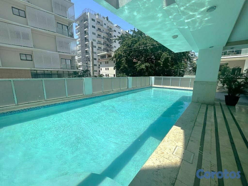 Bello apartamento en Alquiler Amueblado ubicado en Torre vanguardista en la exclusiva zona de Piantini. Dos habitaciones con detalles lujoso, mas Family. Disponible para mudarse ya. Las areas sociales que incluyen: Piscina, Jacuzzi, Gym, Sauna, Area de Niños, Bar y Launge, Sala de usos multiples. Locker Planta Full Lobby Climatizado, Vigilancia 24/7. Torre 100% Familiar. TRES Parqueos