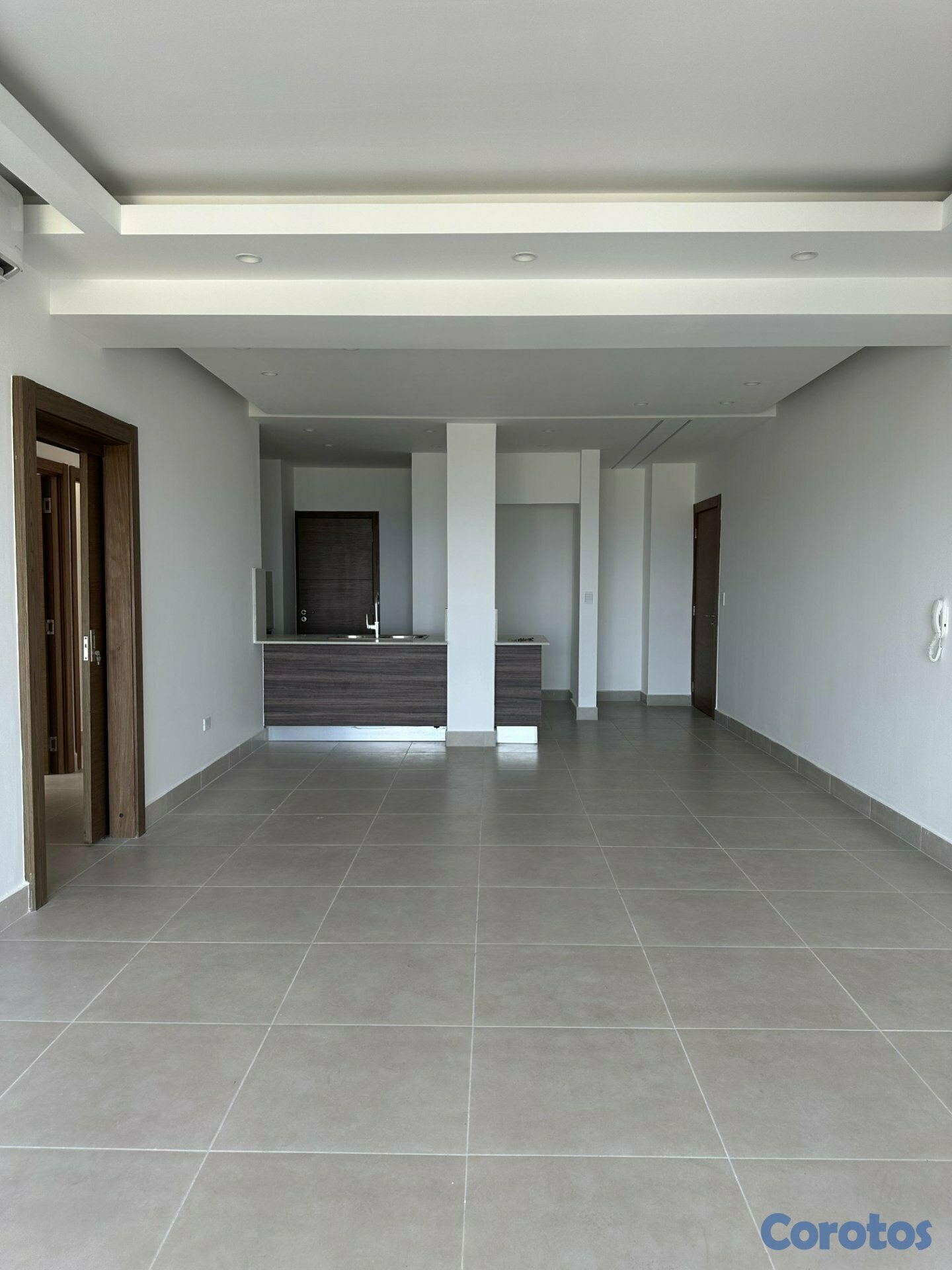 El apartamento cuenta con un diseño especial de iluminación en el techo de la sala y closets trabajados a medida, aportando mayor elegancia y funcionalidad a los espacios.