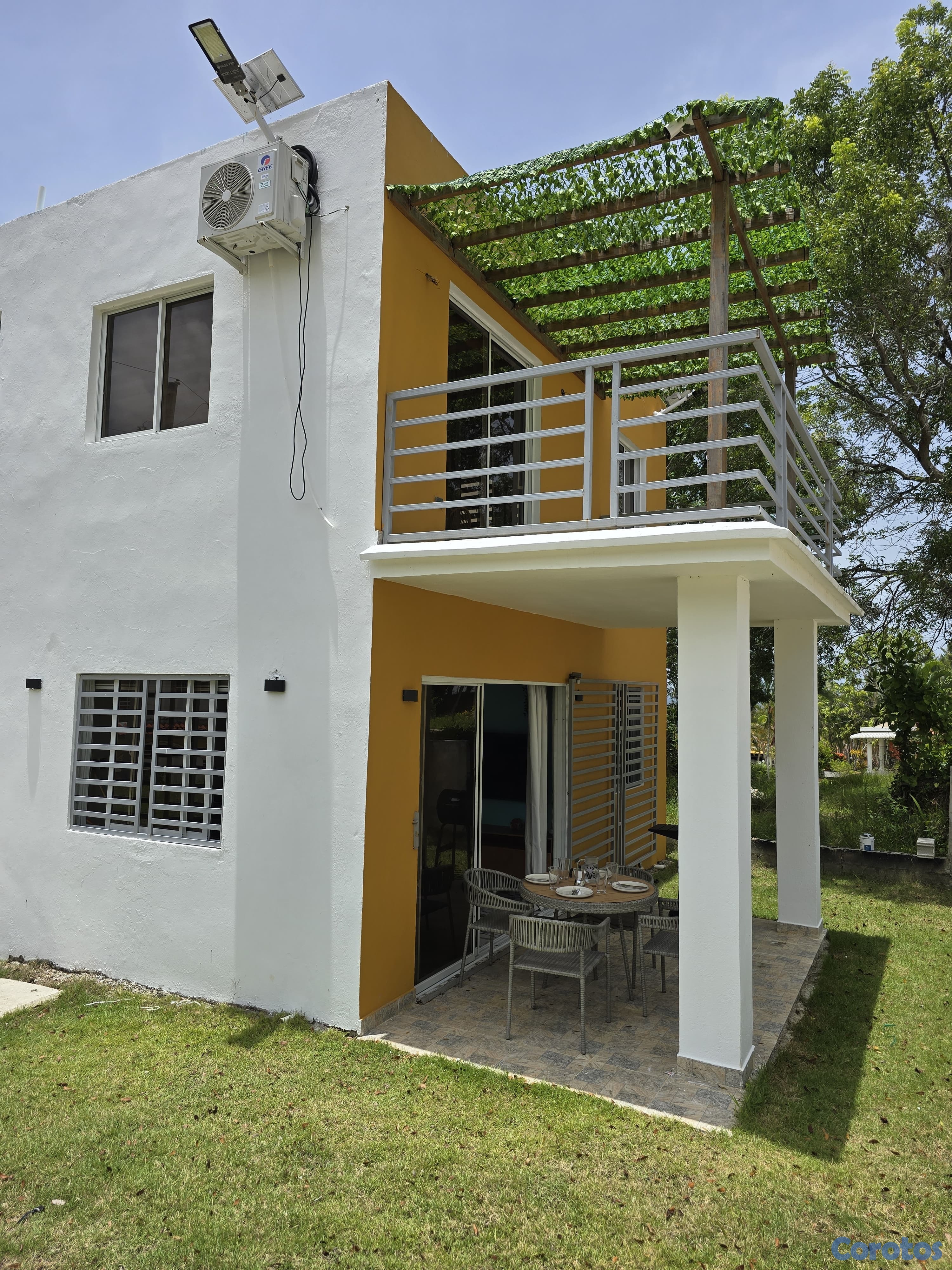 Casa de 2 niveles, 2 habitaciones, 2 baño . Amplia sala y cocina. Patio, balcón, terraza y estacionamiento. La casa está completamente amueblada con aire acondicionado y todo lo necesario para vivir cómodamente. Está ubicada en un proyecto cerrado, con acceso a playa y piscina a pocos metros. El precio incluye mantenimiento. Estadía mínima de 6 meses. Todo nuevo a estrenar. En Los Robalos, Arroyo Barril, Samaná.