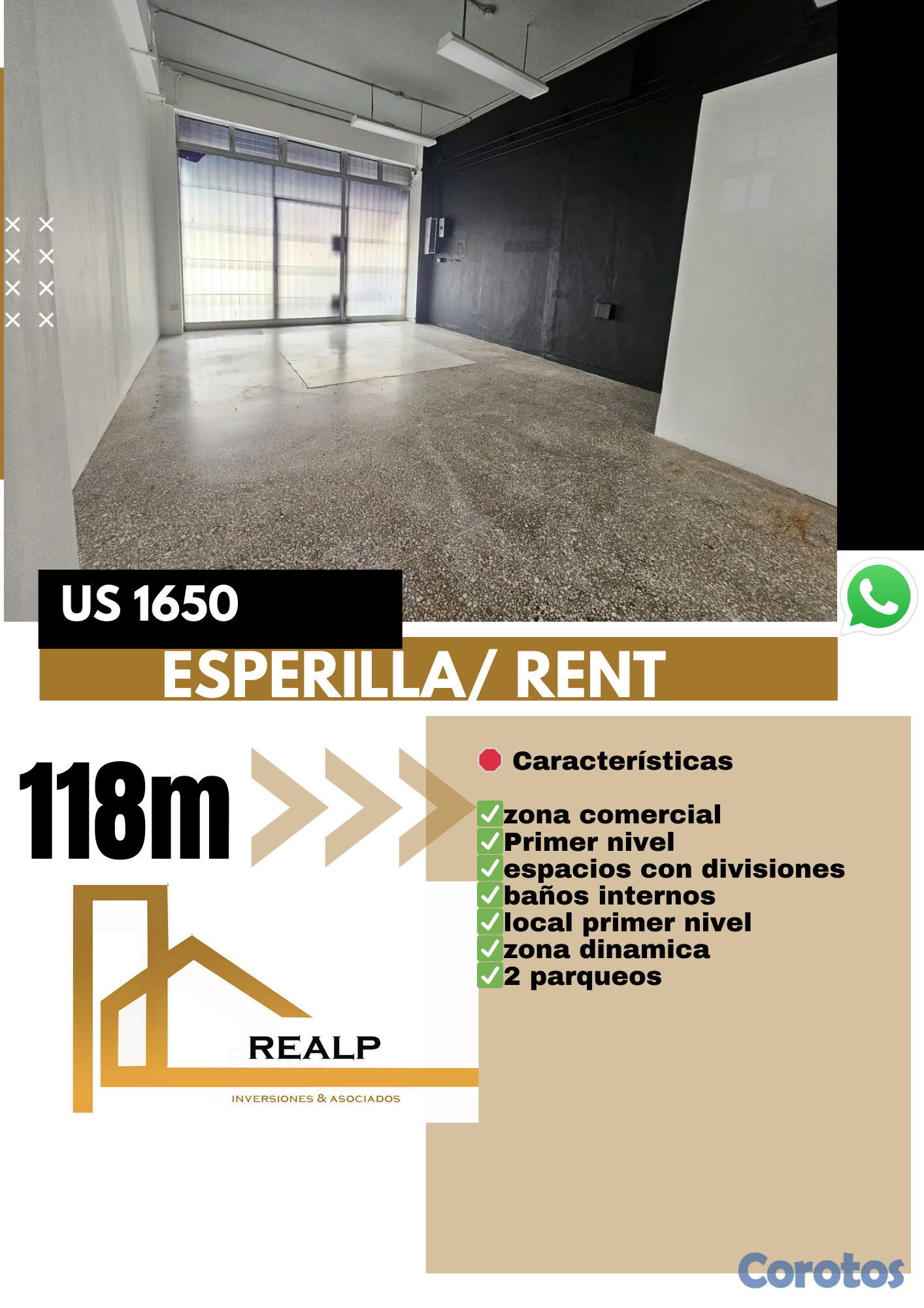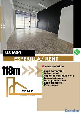 Alquiler local en primer nivel en L esperilla, céntrico, espacio en primer nivel con divisiones que se prestan para oficinas, consultorios, estudios de diseño y demás negocios .
